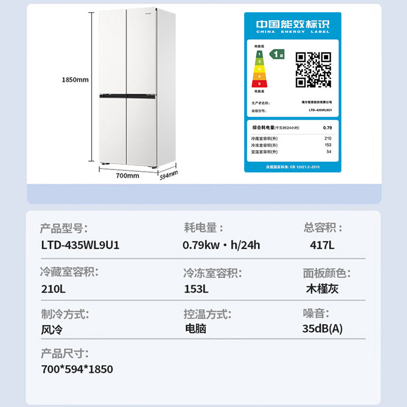 政府换新补贴海尔统帅469L十字对开四门一级风冷大容量家用电冰箱