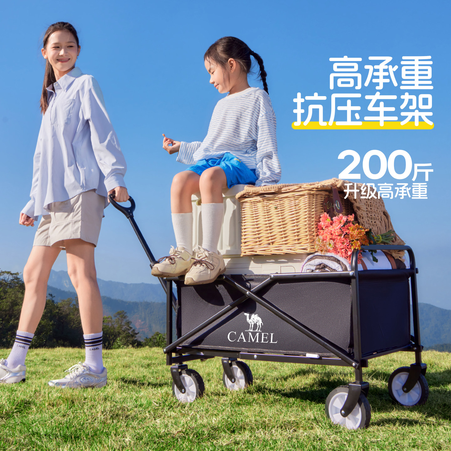 camel露营车手推车拉车营地车可折叠快递车儿童可躺户外野餐拉车