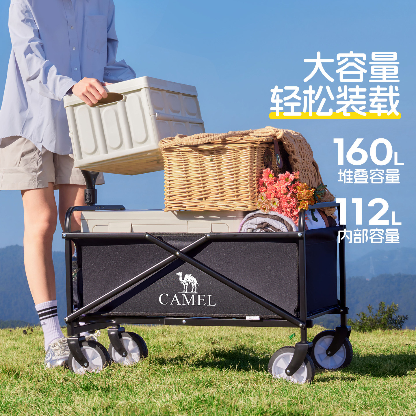 camel露营车户外折叠野营推车营地拖车野餐大容量拉快递儿童可躺