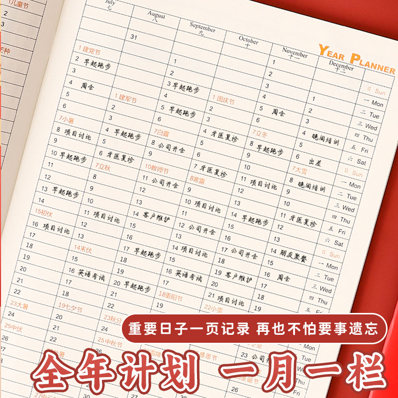 2026年月计划本国风日程本记录记事本工作小秘书日历年历每日计划表自律打卡笔记本子时间管理带日期定制logo