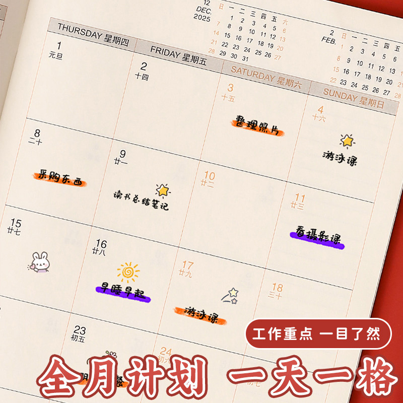 2026年日程本新款计划表365天每日时间管理效率手册大学生日历自律打卡本高颜值记事本文艺精致手账笔记本子