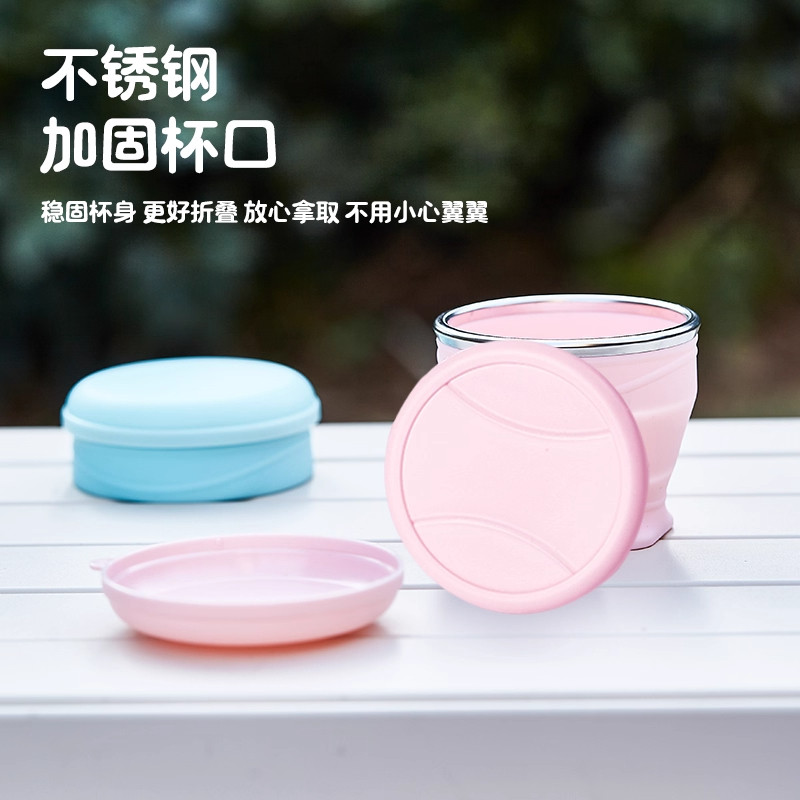 食品级硅胶折叠水杯便携式旅行不锈钢露营漱口杯子旅游户外耐高