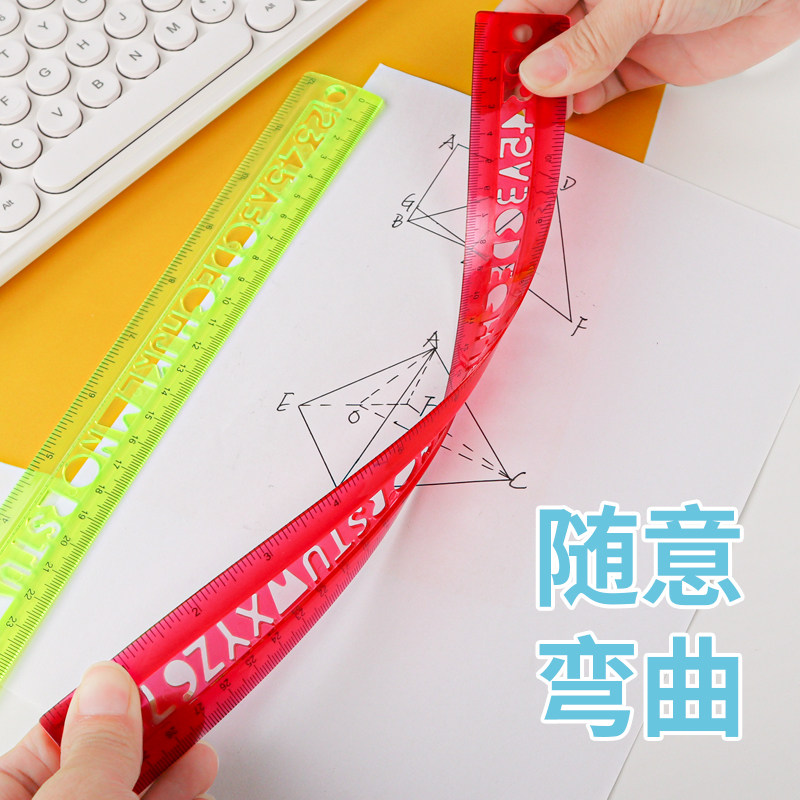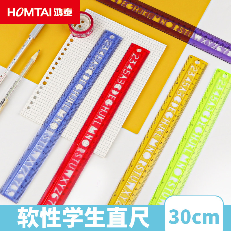 鸿泰30CM亚克力直尺办公文具尺子制绘图工具测量软尺30公分英尺多规格彩色DIY学生文具PS塑料格尺加厚板尺