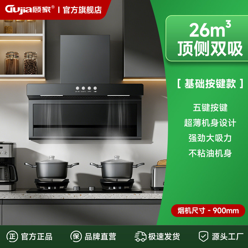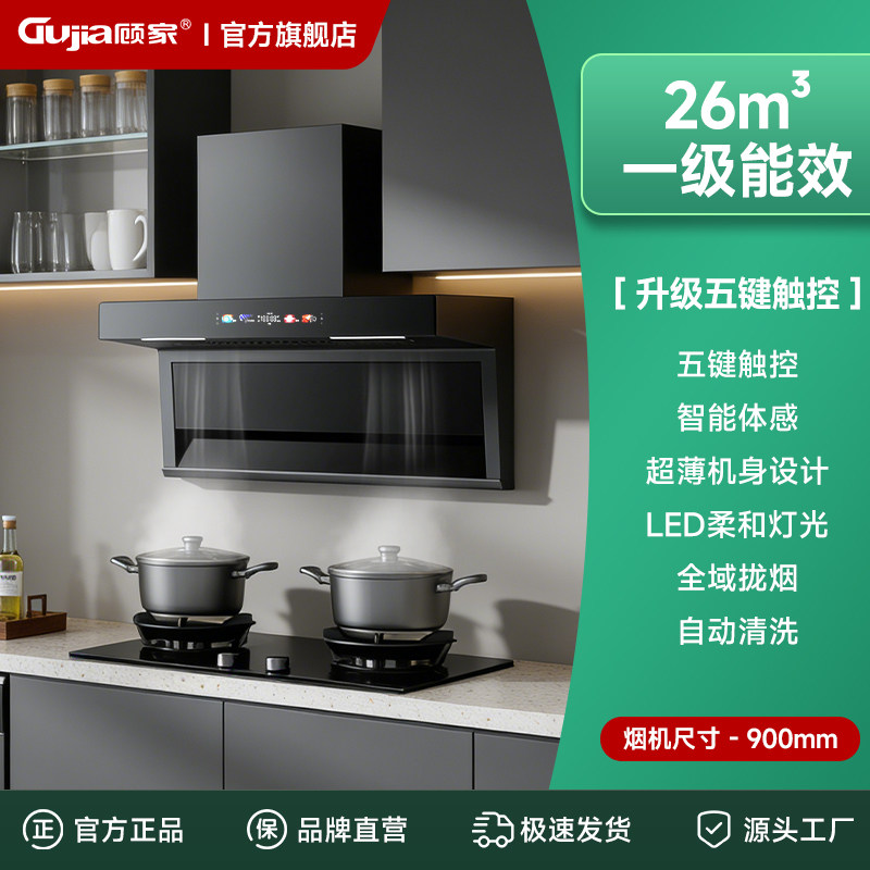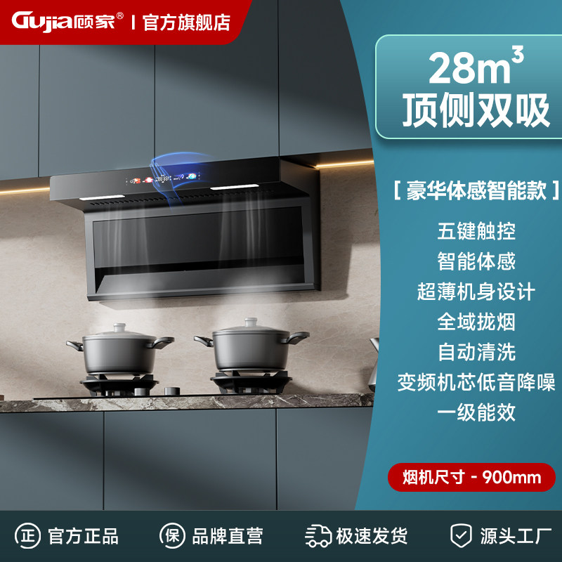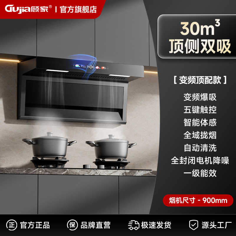 顾家7字型顶侧双吸智能挥手感应自清洗家用大功率变频爆吸油烟机