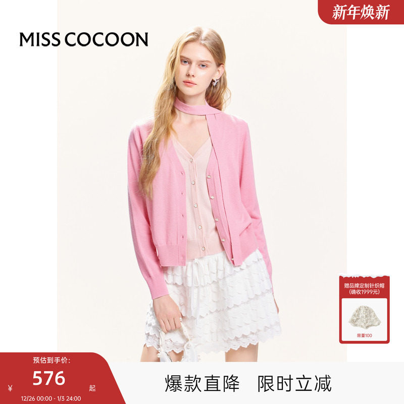 可可尼cocoon纯棉V领针织衫女2025秋季新款羊毛衫假两件开衫毛衣