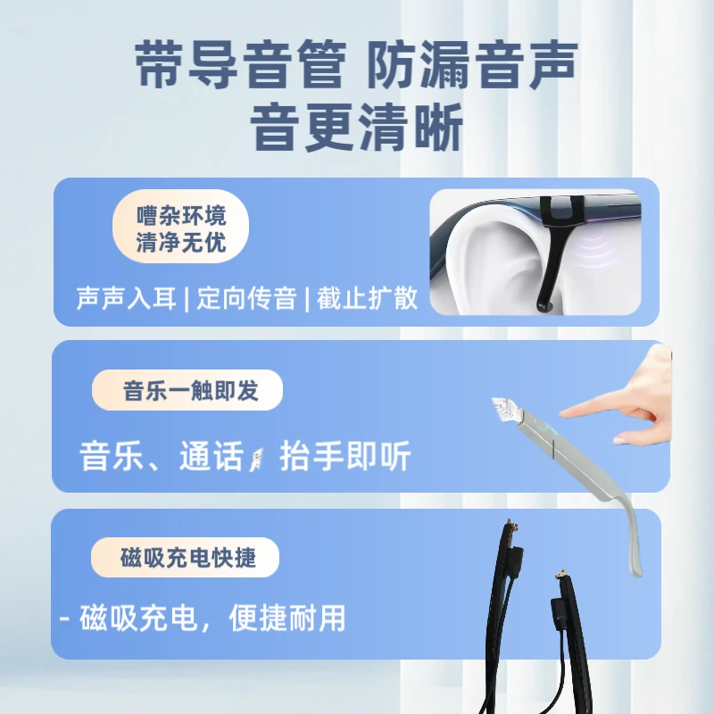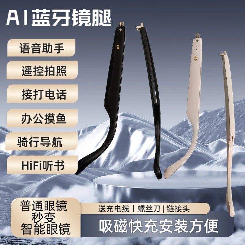 智能蓝牙眼镜腿隐形长续航磁吸充电通用降噪隐形设计适配稳定兼容