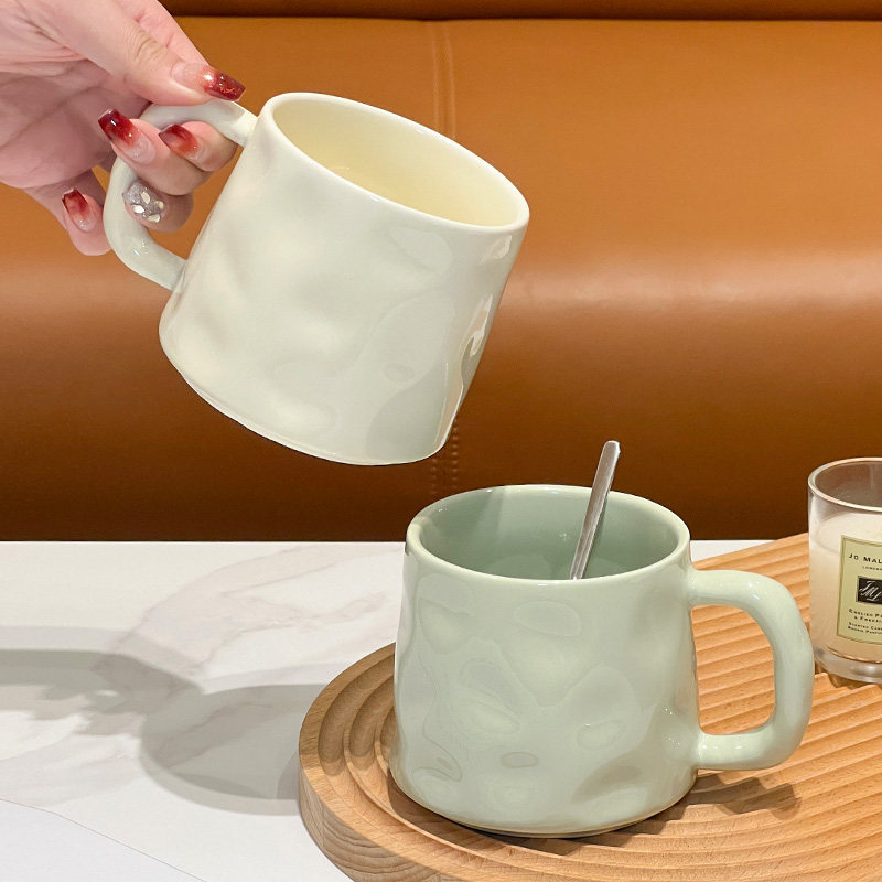 ins陶瓷杯高级感扭扭马克杯家用小众设计情侣咖啡杯女生喝水杯子