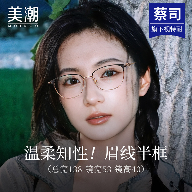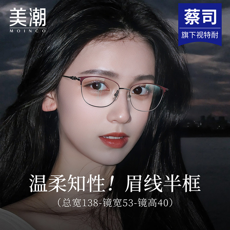 超轻纯钛眉线半框眼镜近视女网上可配度数防蓝光素颜高级感眼睛架