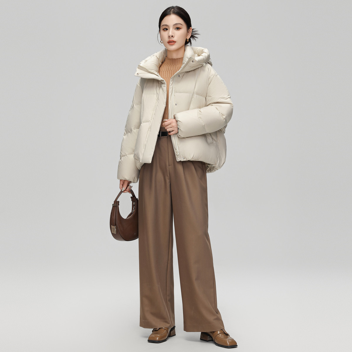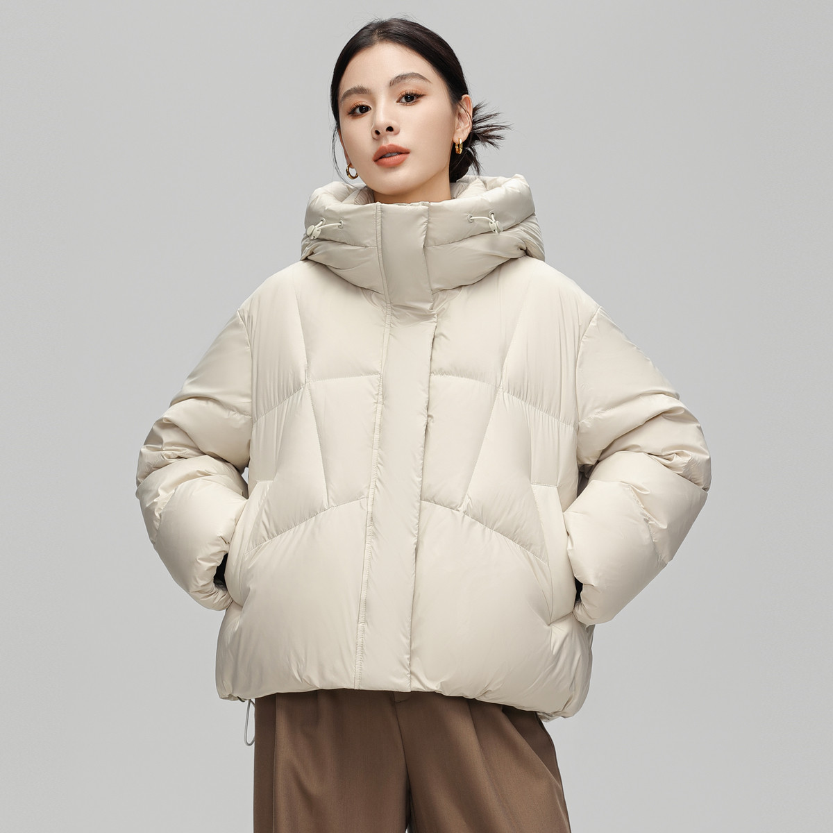 雪中飞2026春新款女士短款羽绒服连帽加厚纯色时尚御寒保暖廓形