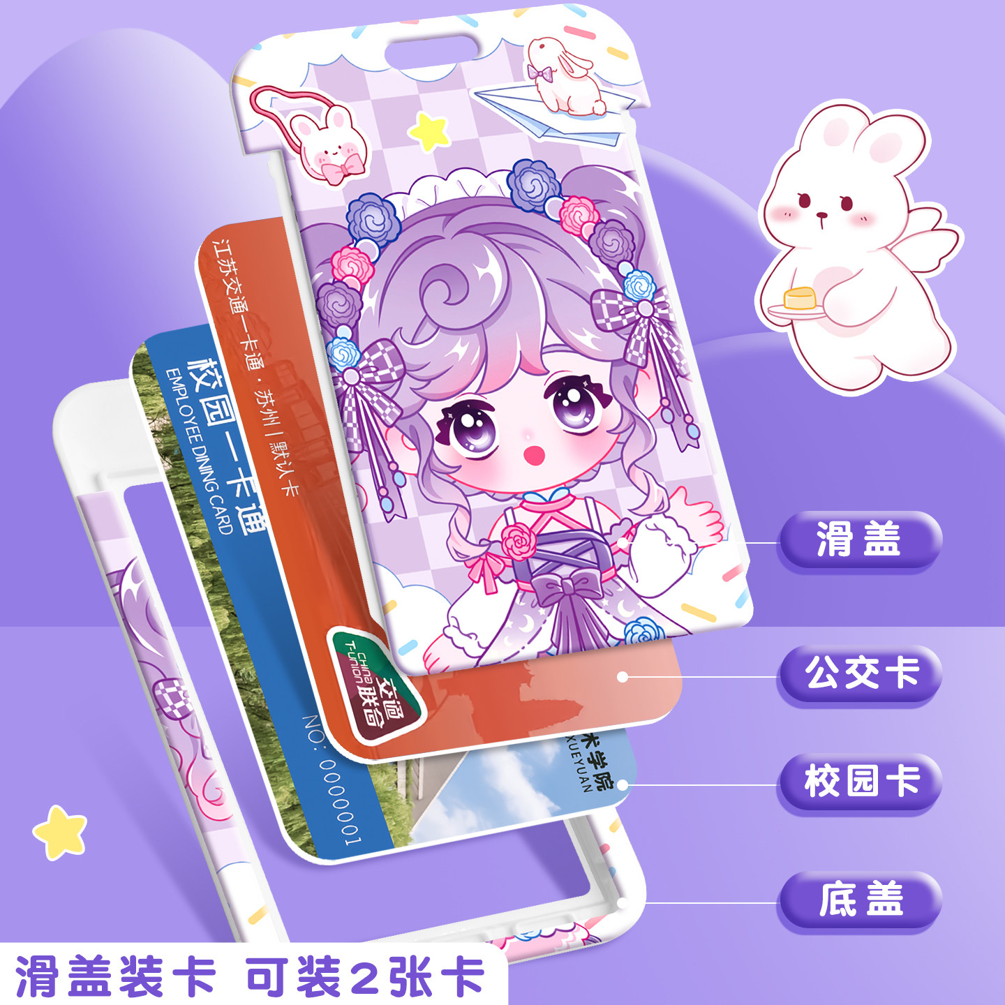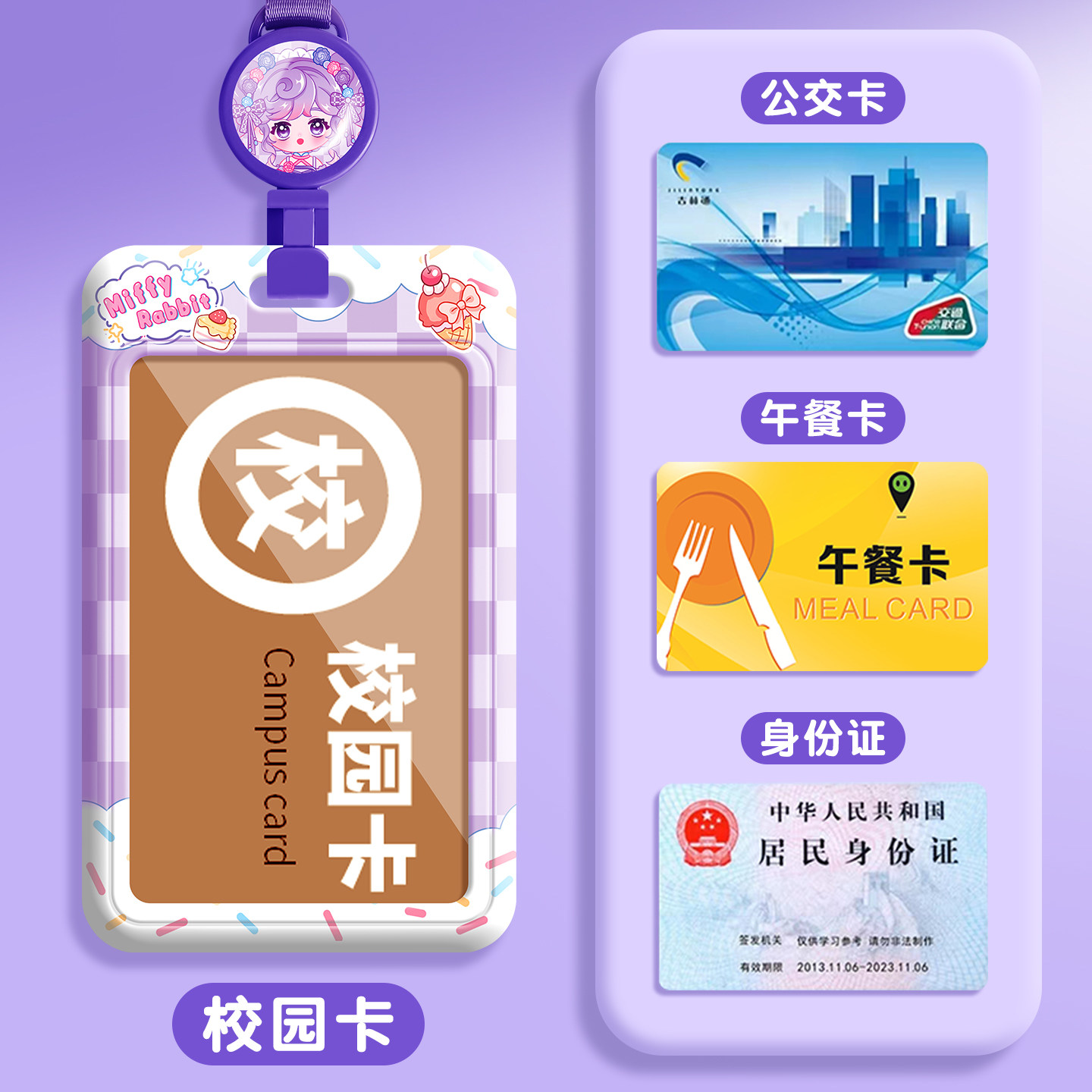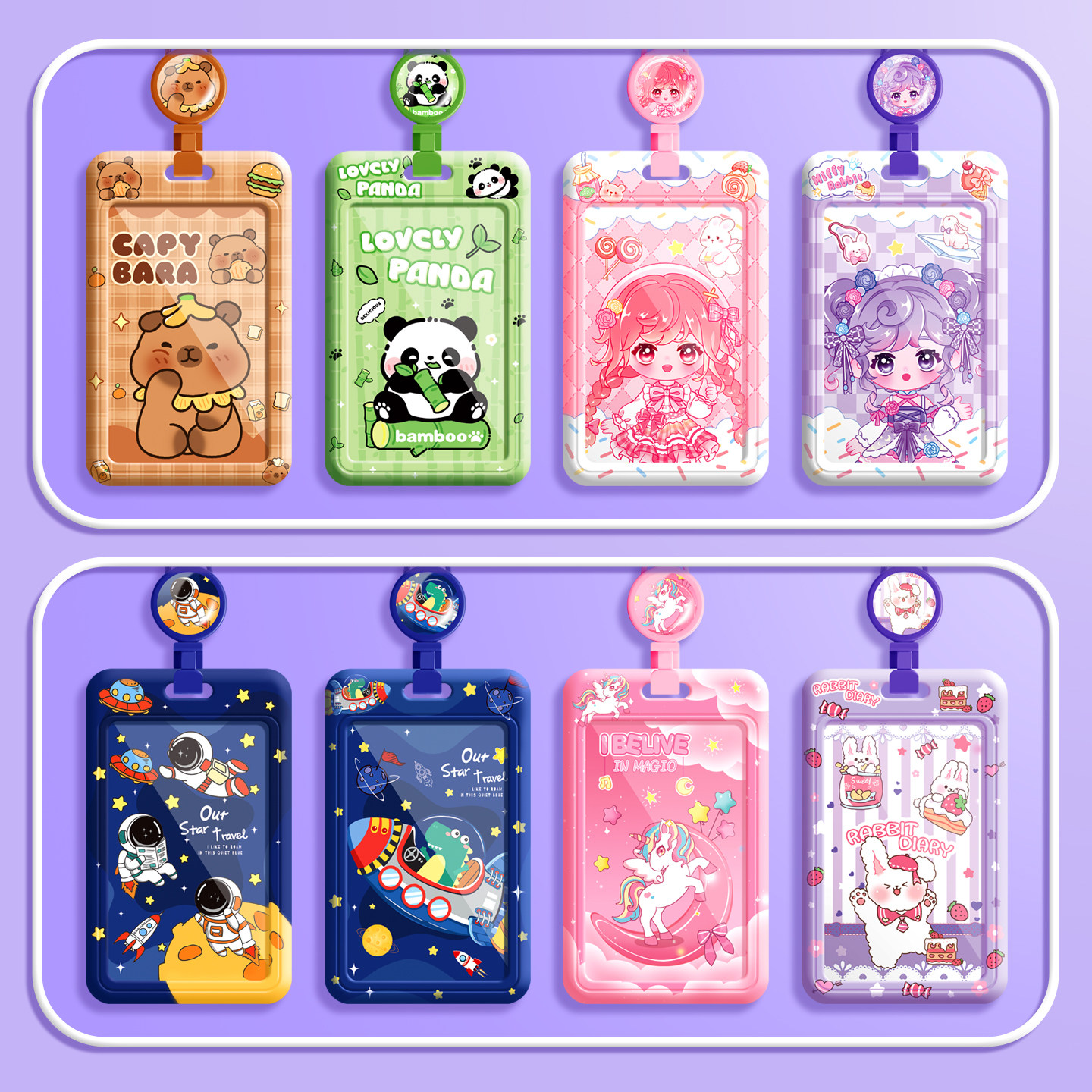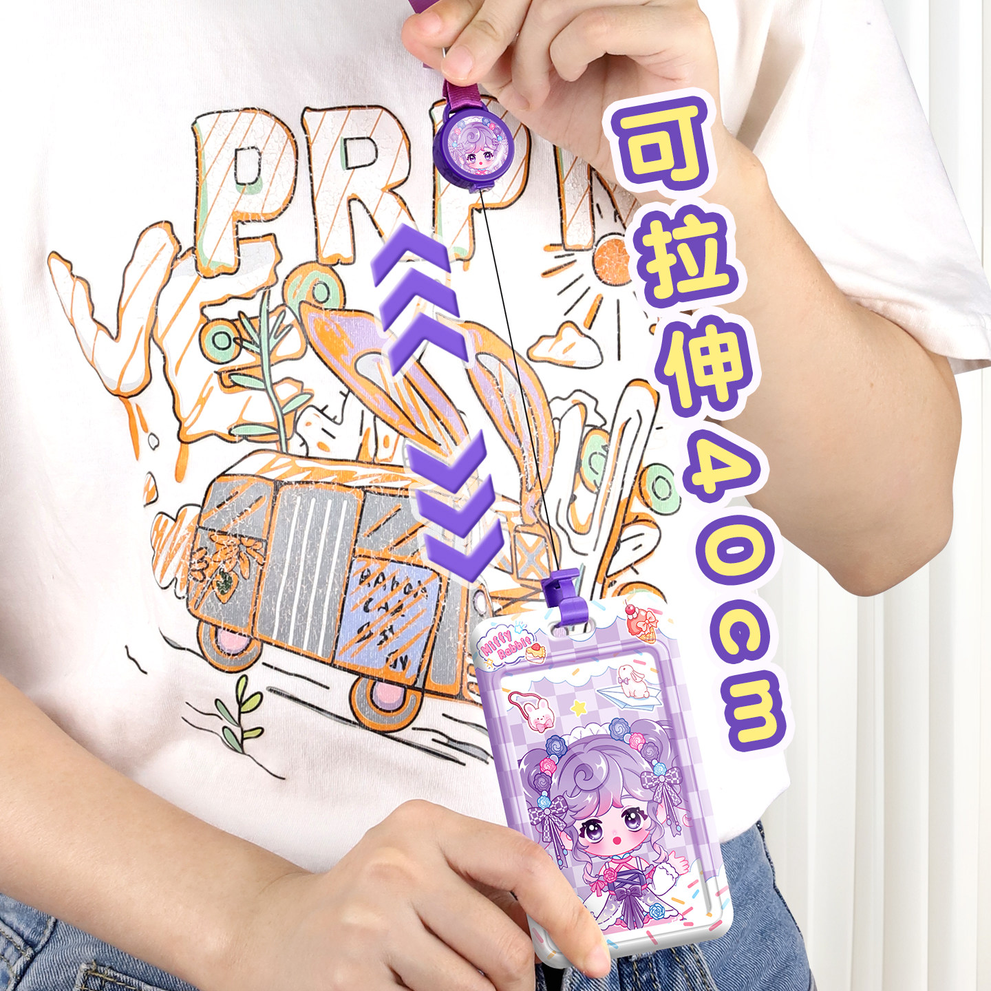 卡通卡套学生校园卡身份证保护套带挂绳可伸缩证件套员工证件幼儿园儿童公交饭卡绳胸牌门禁挂脖工牌防丢