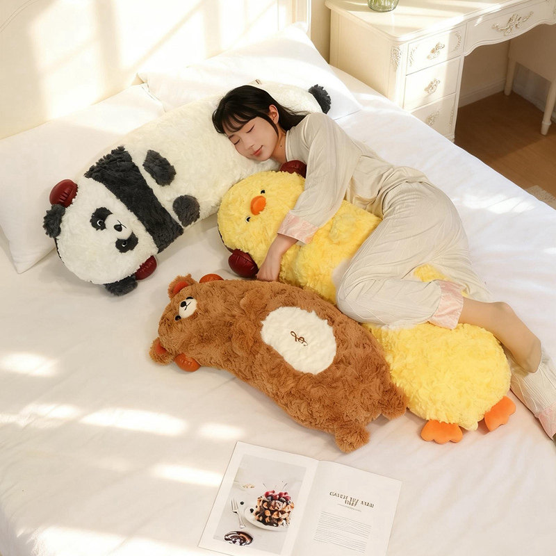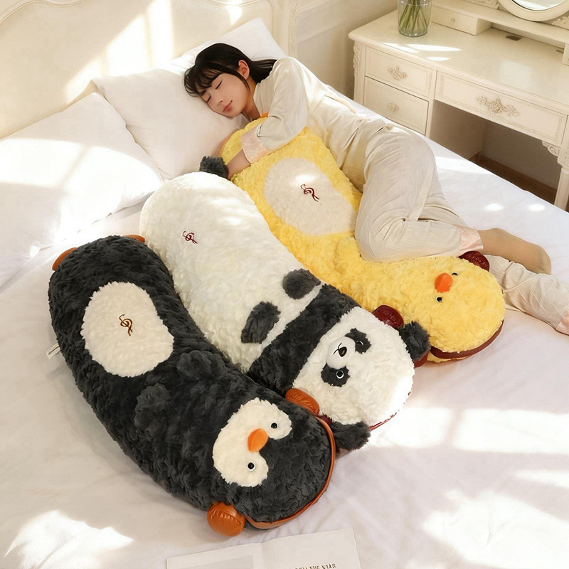 可爱小黄鸡公仔长条抱枕女生睡觉布娃娃熊猫玩偶毛绒玩具礼物批发