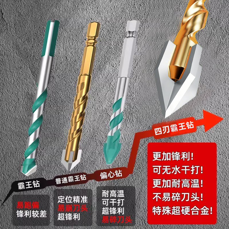 四刃霸王钻钻头瓷砖打孔混凝土超硬专用电钻高硬度孔水泥墙全瓷