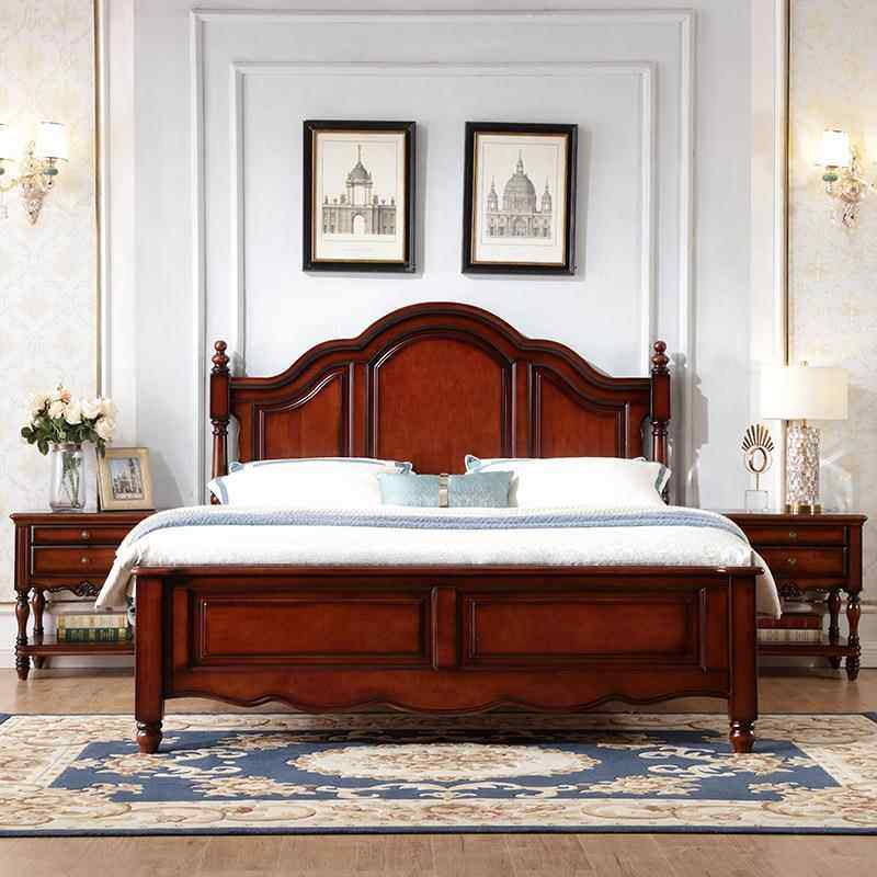 橡胶木全实木床双人床美式乡村主卧室套房家具欧式婚床高箱储物床
