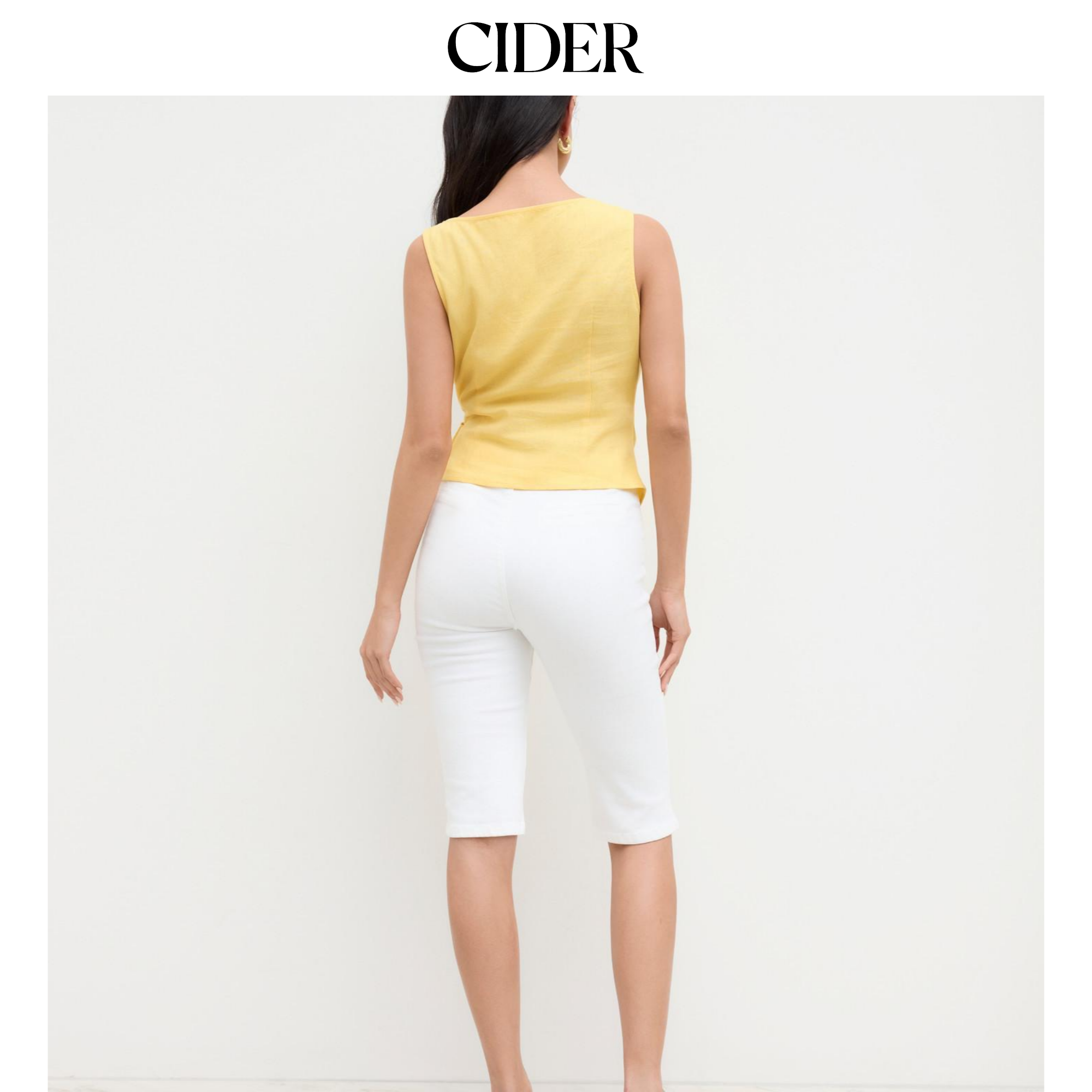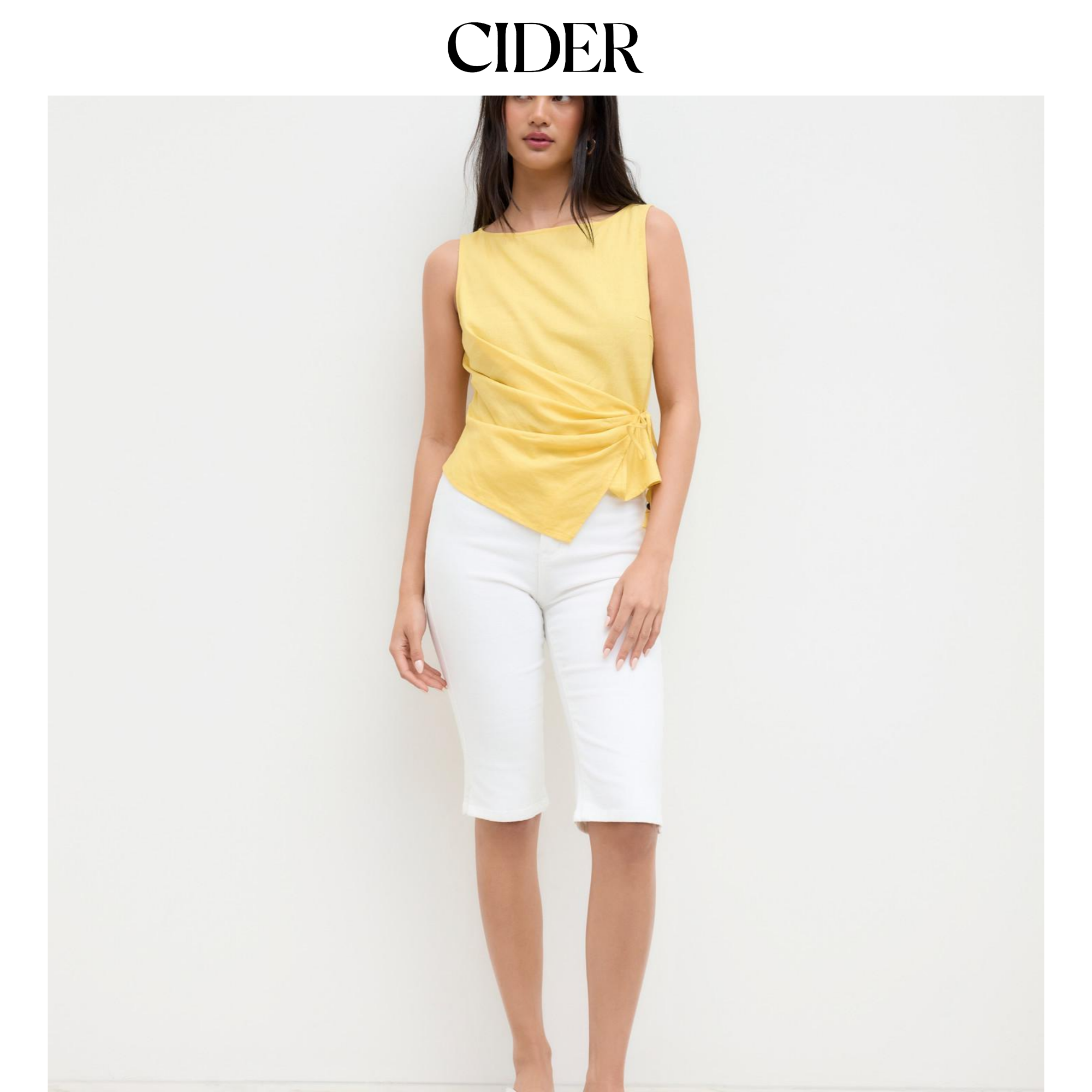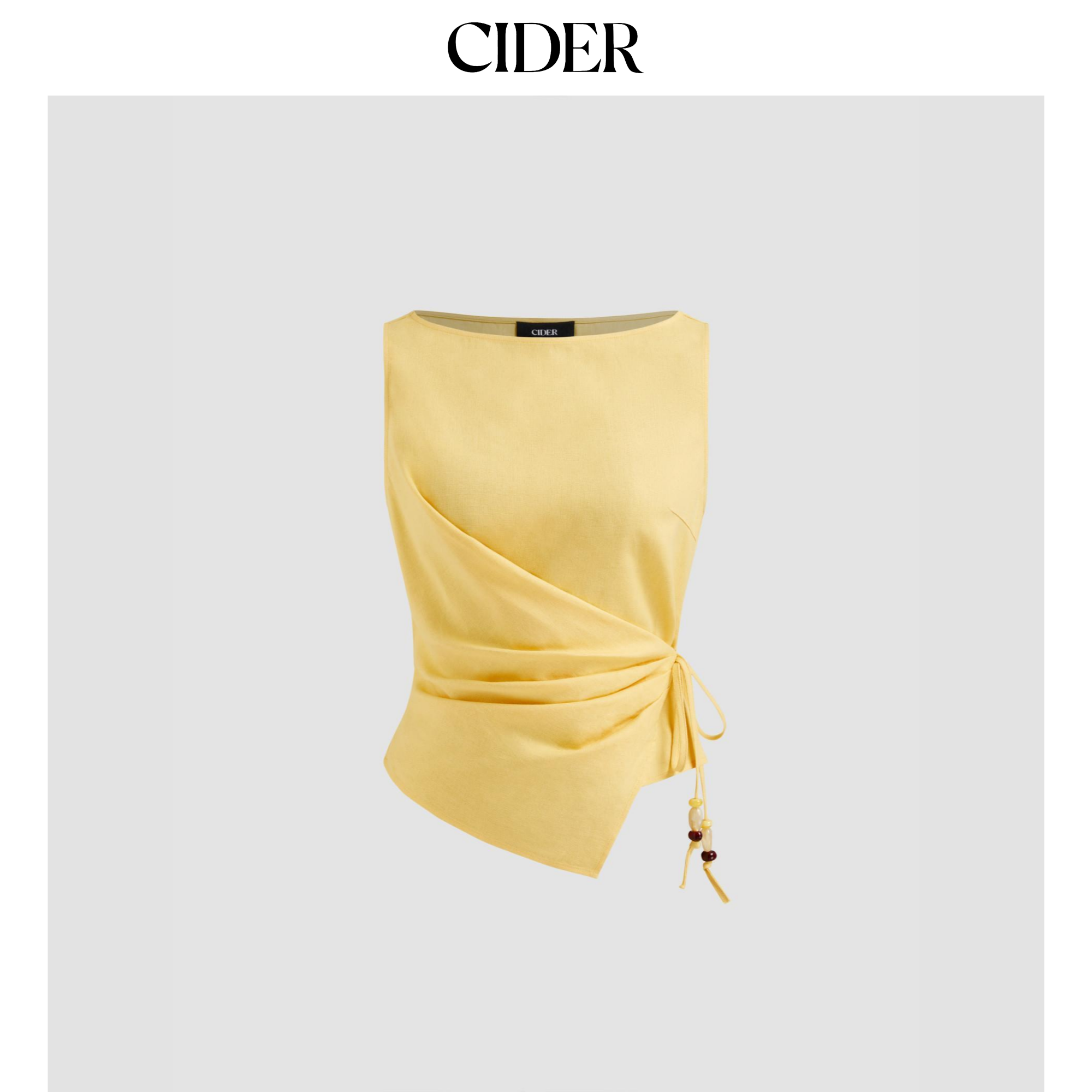 CIDER夏季新品女装亚麻串珠系带褶皱抹胸上衣114517794