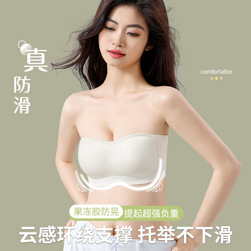 冰丝无肩带内衣女防滑隐形美背抹胸裹胸无痕夏薄款小胸聚拢文胸罩