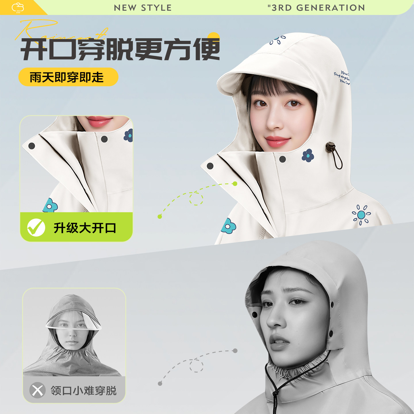 镜套可两用、高领好穿脱、加长下摆