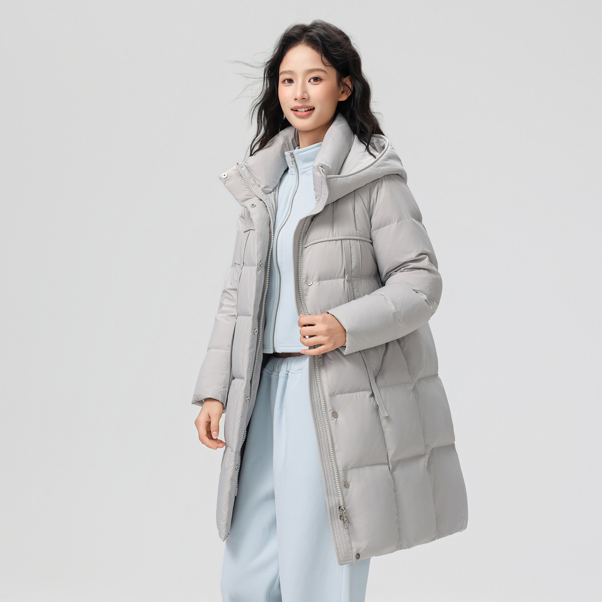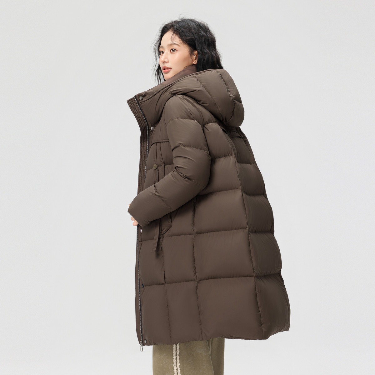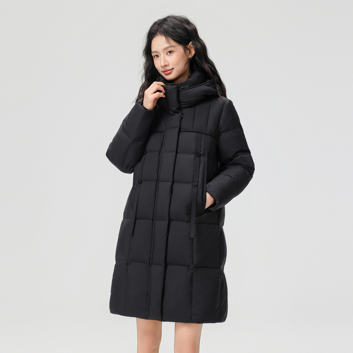 雪中飞2025冬新款女士中长款羽绒服简约通勤气质连帽保暖外套