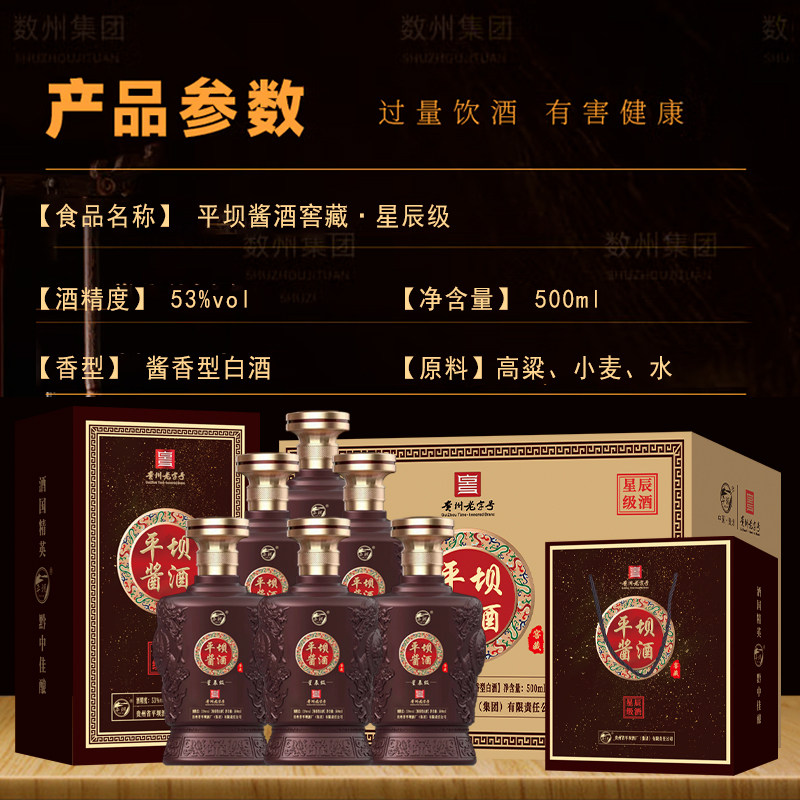 贵州平坝酱酒53度酱香型星辰级整箱6瓶装 粮食酿造高档送礼盒白酒