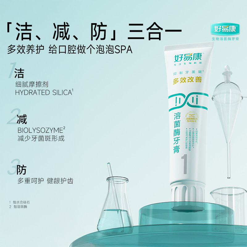 好易康溶菌酶牙膏1号口腔牙龈清新牙齿亮白家庭装牙菌斑专业健康