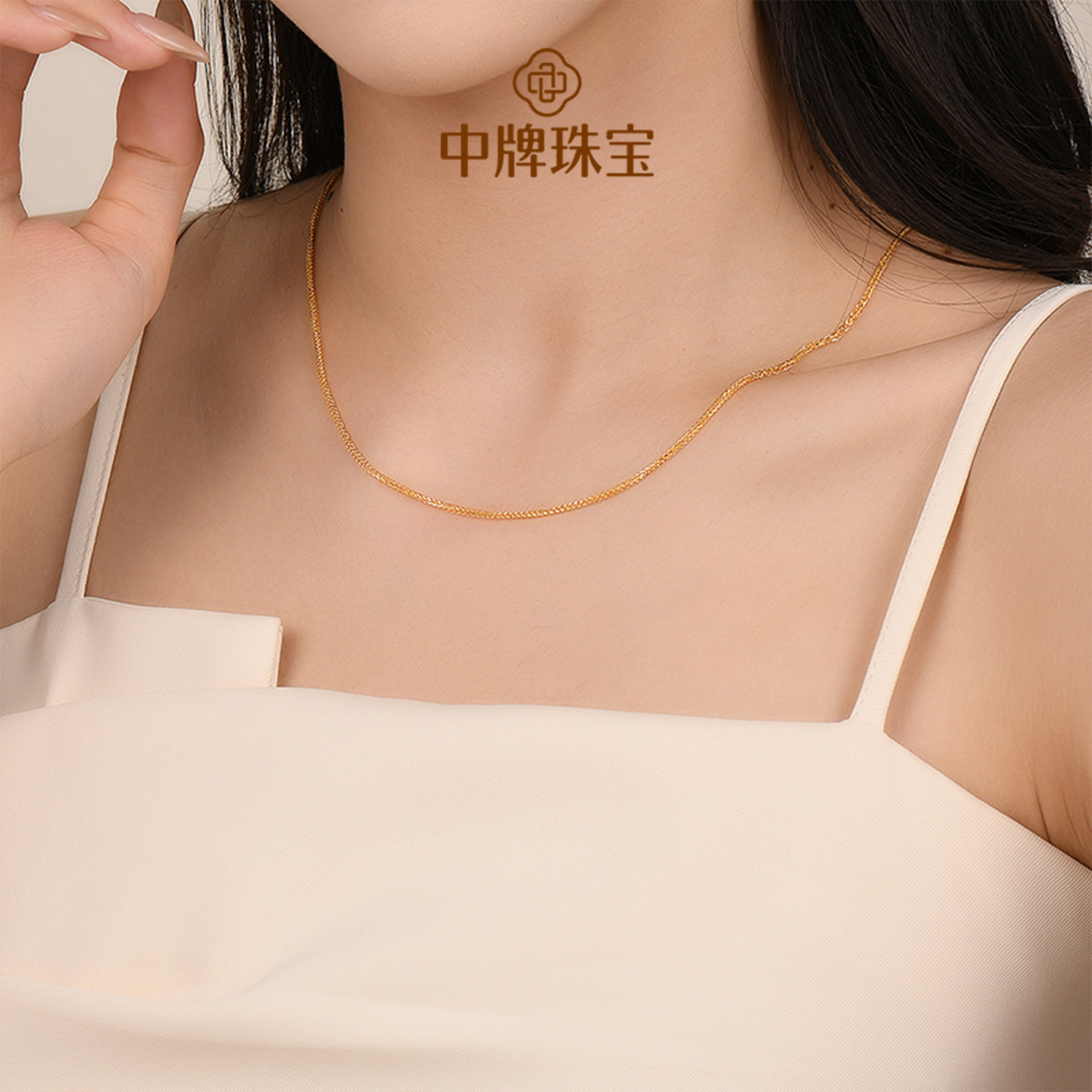 黄金项链足金肖邦链纯金素链经典百搭锁骨链金项链金链子吊坠配链