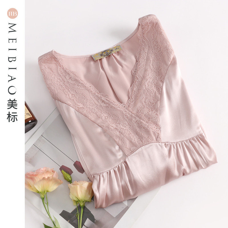 美标重磅6A级真丝睡裙女春夏丝绸蕾丝睡衣100%桑蚕丝可外穿家居服