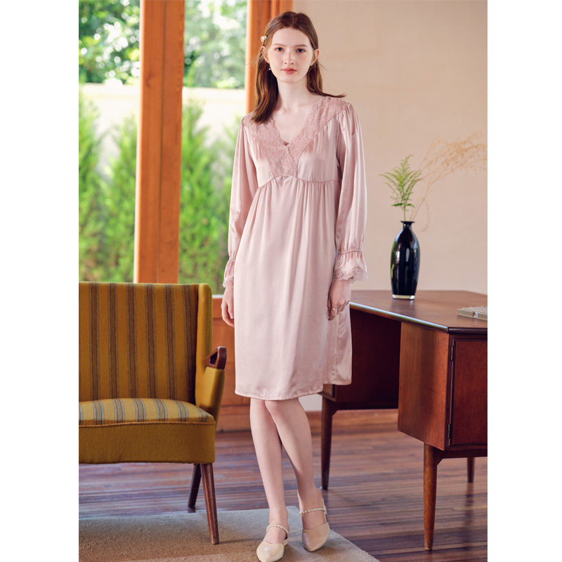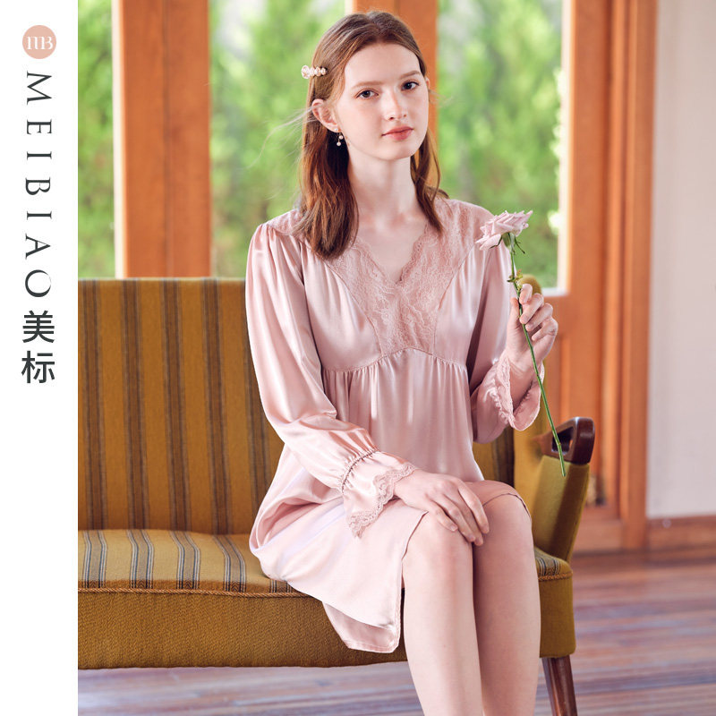 RoseTree冰丝睡裙女春秋长袖蕾丝性感宫廷公主风纯欲睡衣2025新款