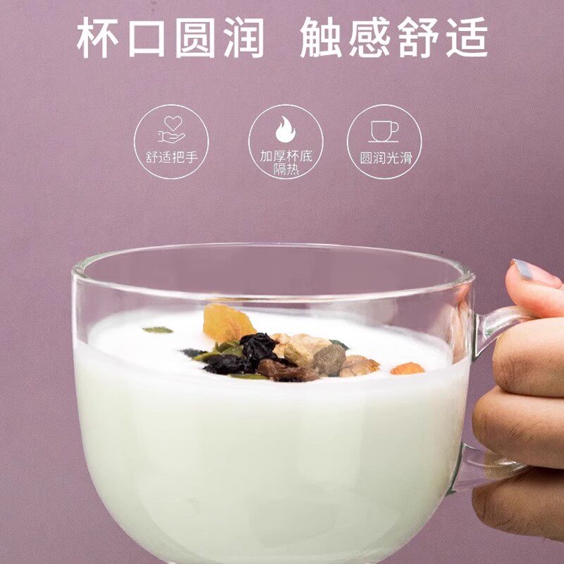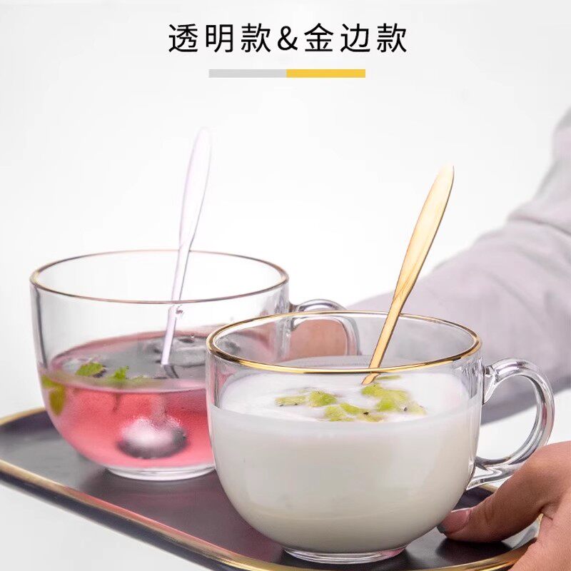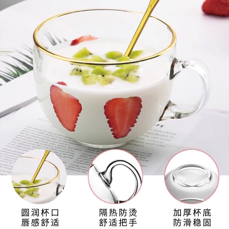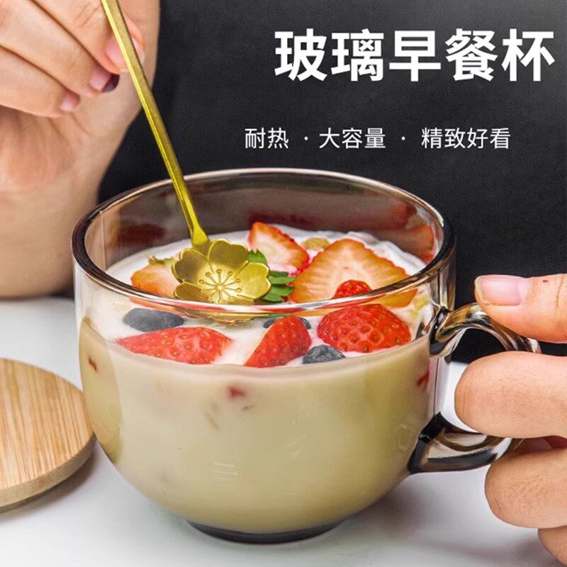 酸奶碗大容量玻璃杯燕麦片早餐杯子女牛奶杯带盖勺碗杯带把咖啡杯