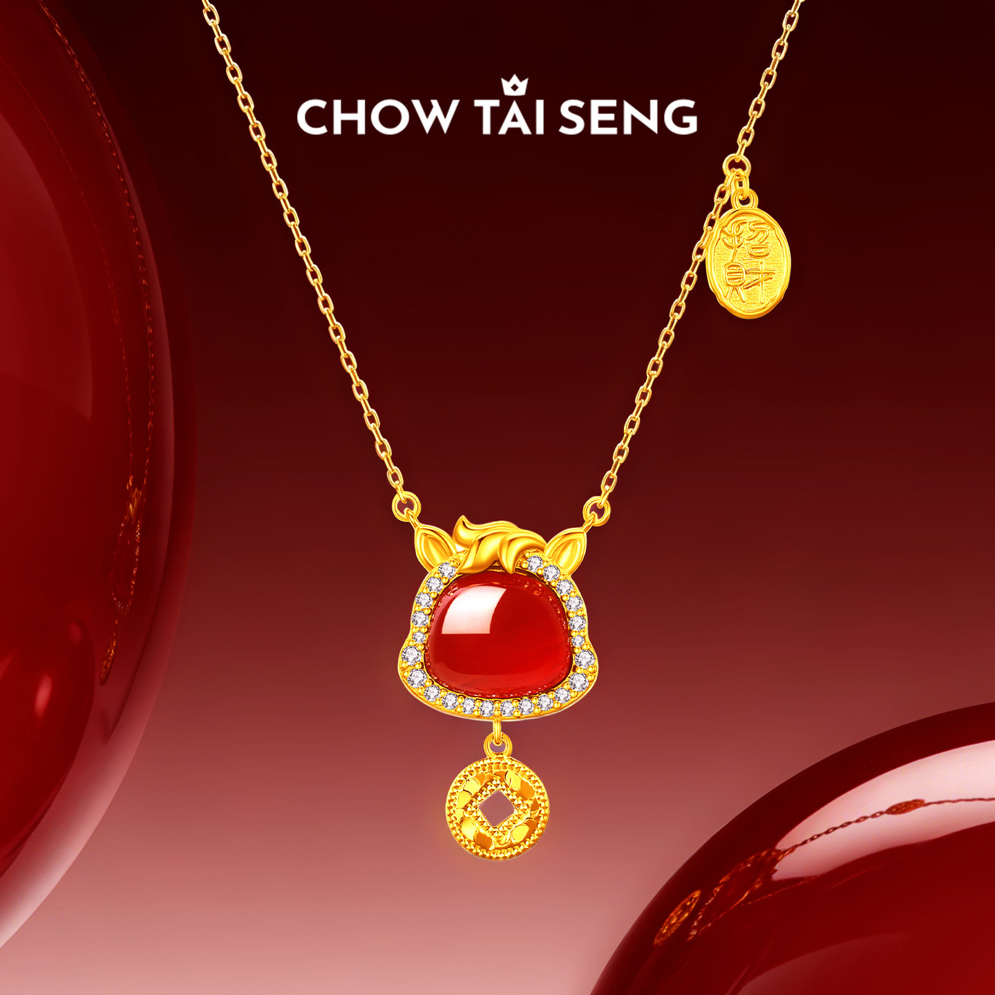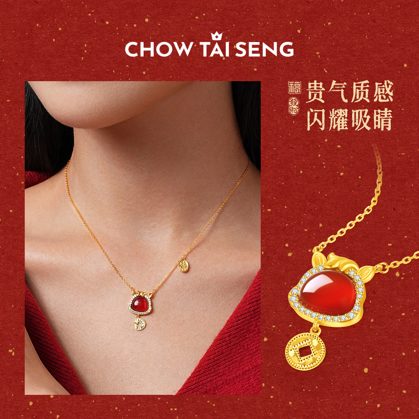 周大生红玛瑙生肖马项链女925纯银首饰品锁骨链送女友本命年礼物