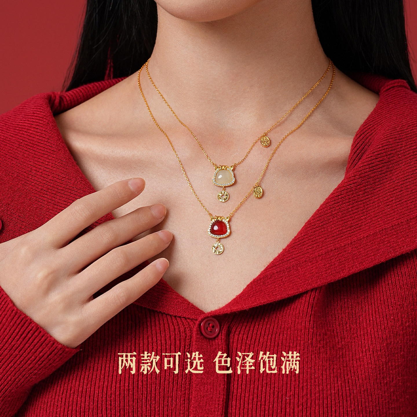 周大生福气平安扣项链女S925银玉髓吊坠轻奢本命年送妈妈生日礼物