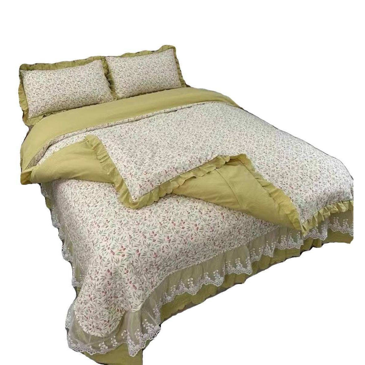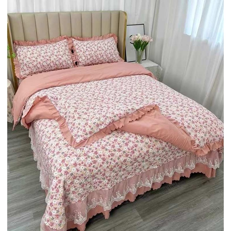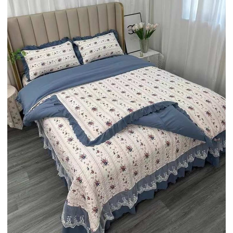 夹棉床盖三件套水洗棉被套四件套小竹棉防滑床罩公主风床裙床上用