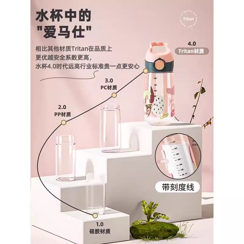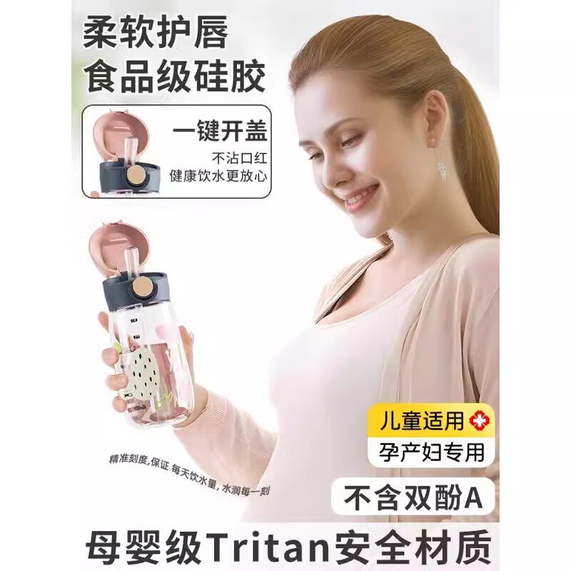 孕妇产妇孕妈带吸管杯子刻度女水壶随手直饮杯子上学专用儿童水杯