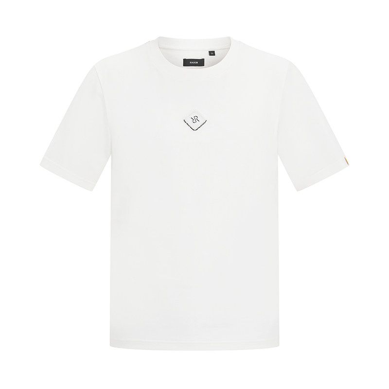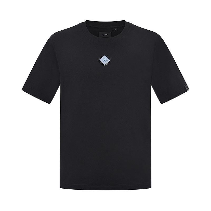 RARE威雅男装夏季新款 方形双R装饰标 黑色休闲圆领T恤男短袖