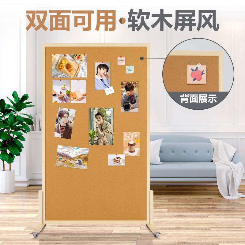 双面软木屏风可移动带软木板展示板留言照片家用滚轮板墙公告背景