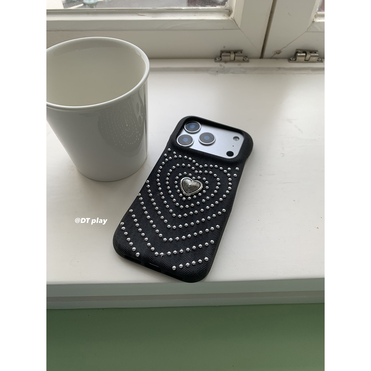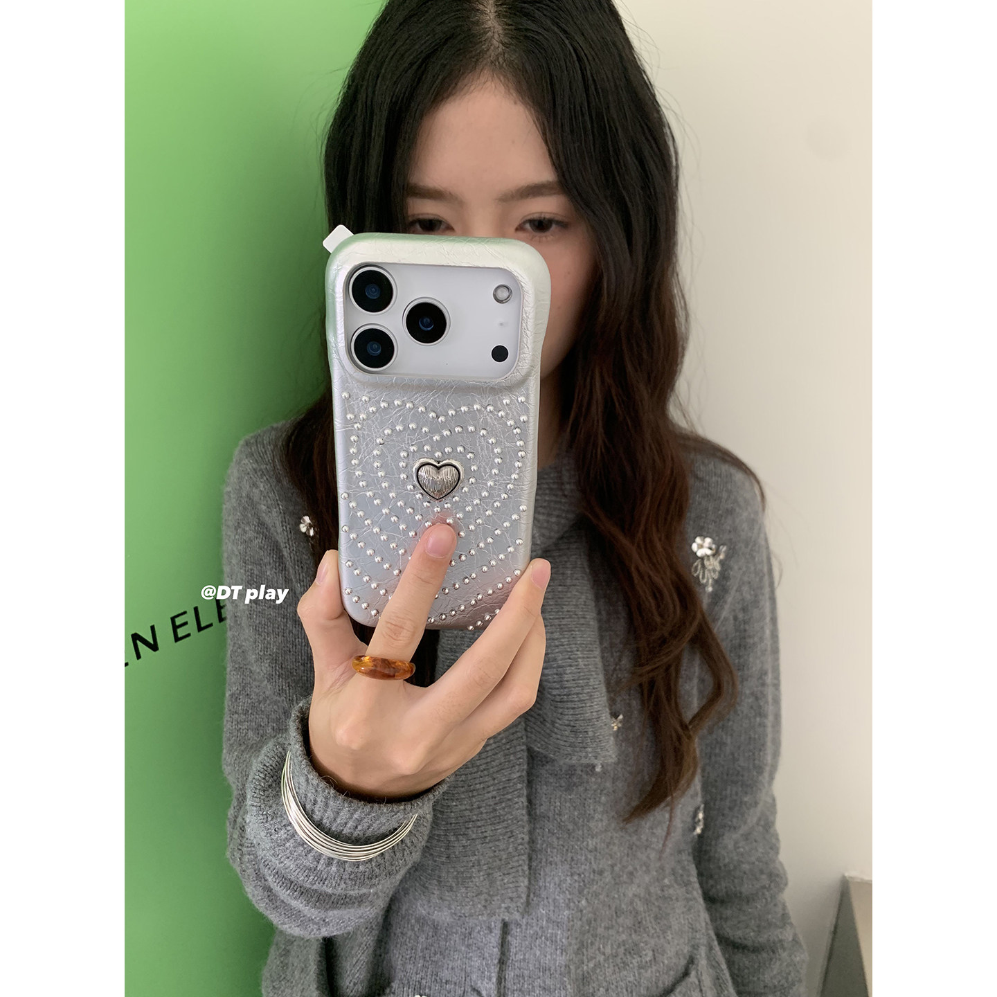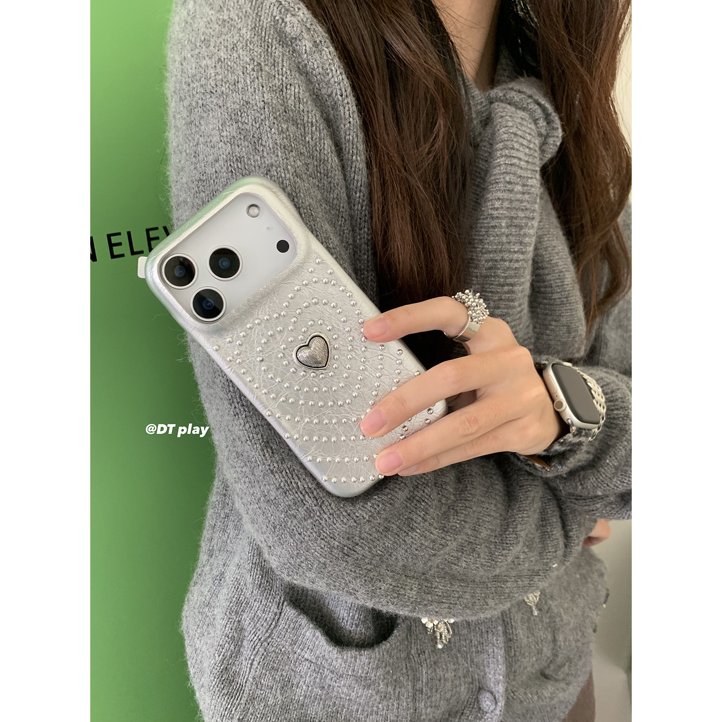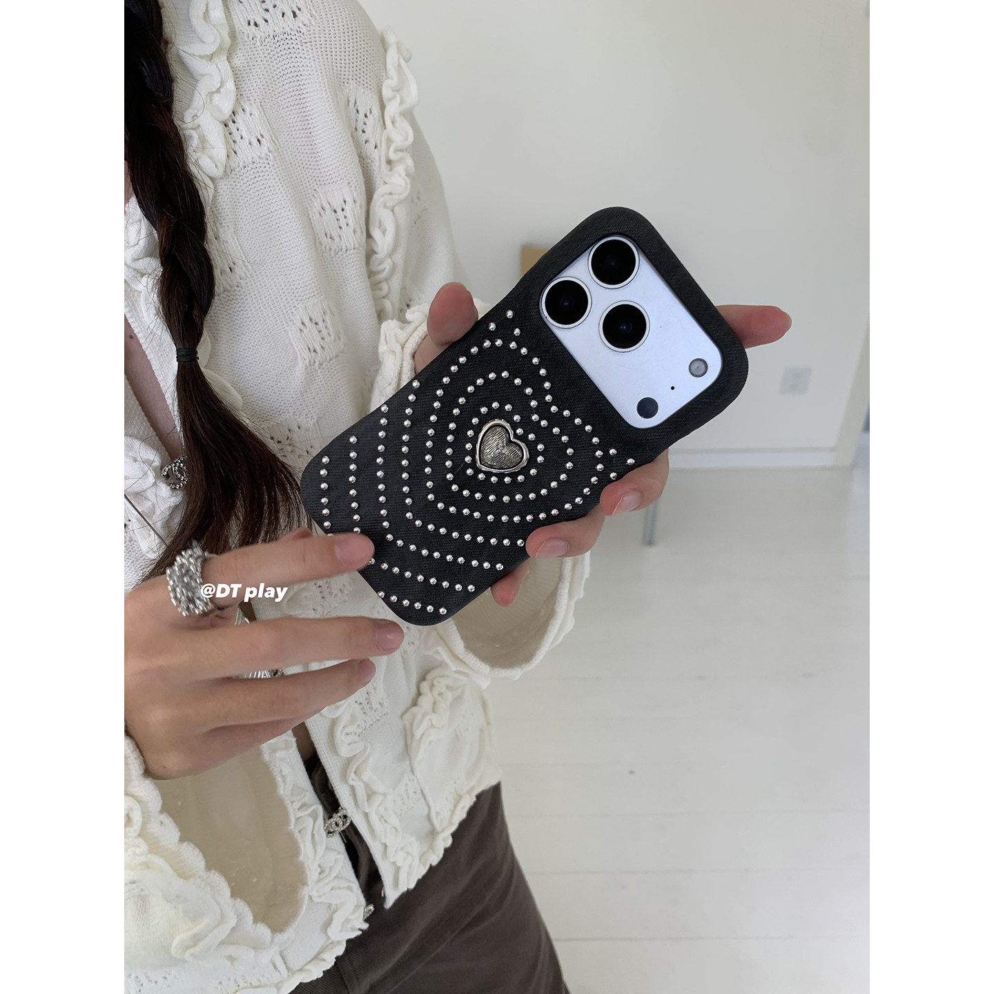 DT play 银色爱心发散铆钉轻松出片韩国ins博主小众设计适用于iphone17promax/16/15苹果14/13手机壳保护套