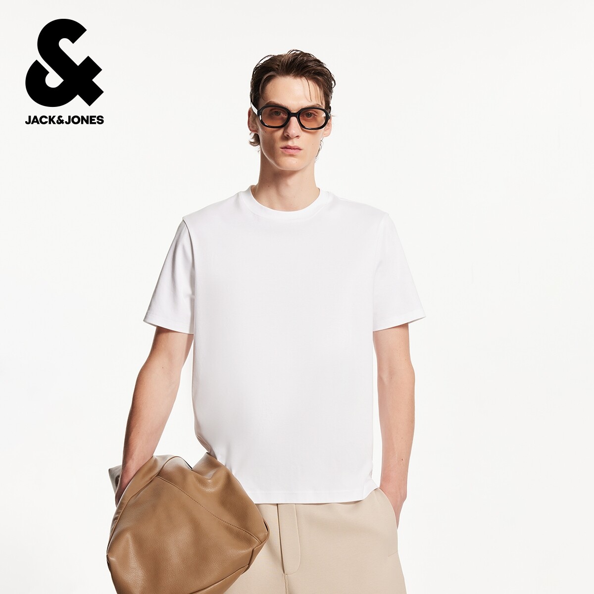杰克琼斯男士短袖T恤男款男装夏季新款全棉logo刺绣直筒休闲上衣