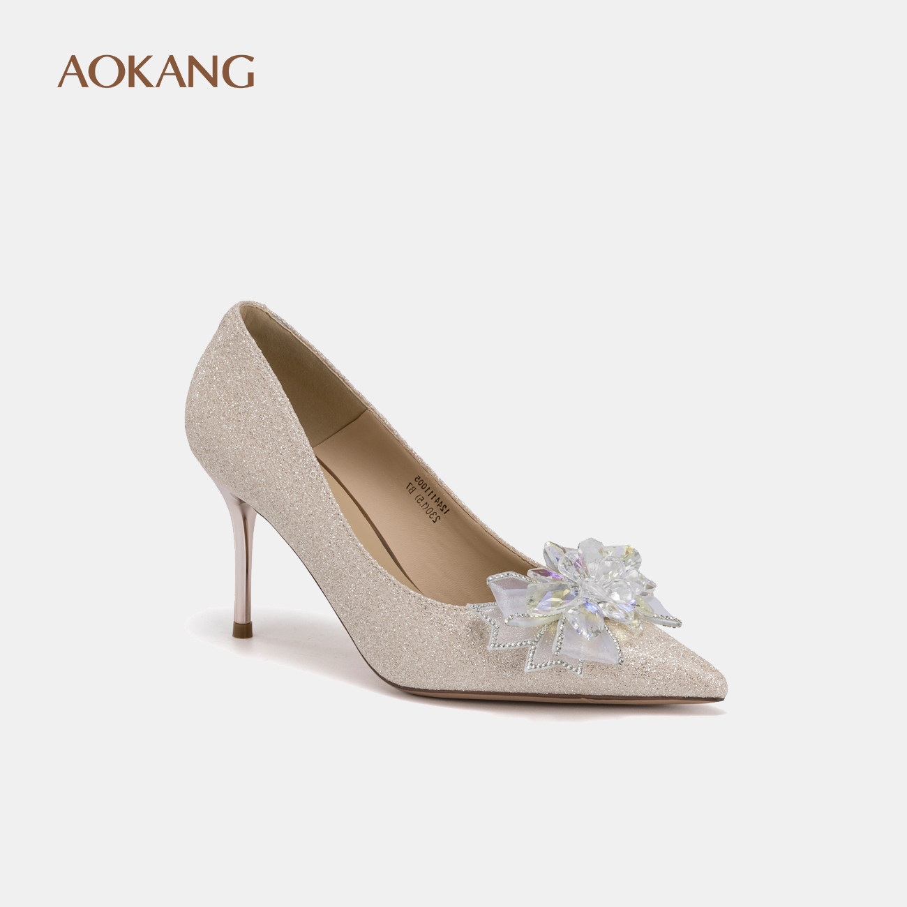 【爱与面包】奥康女鞋 春秋季法式水晶钻婚鞋宴会猫跟高跟鞋