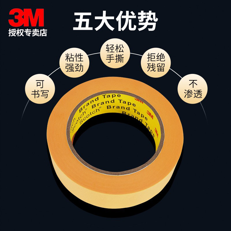 3M244美纹纸黄色正品无痕防焊耐高温胶带汽车喷烤漆模型遮蔽胶纸