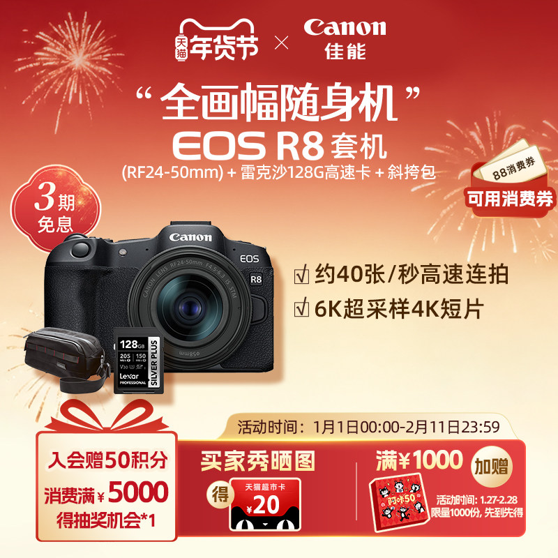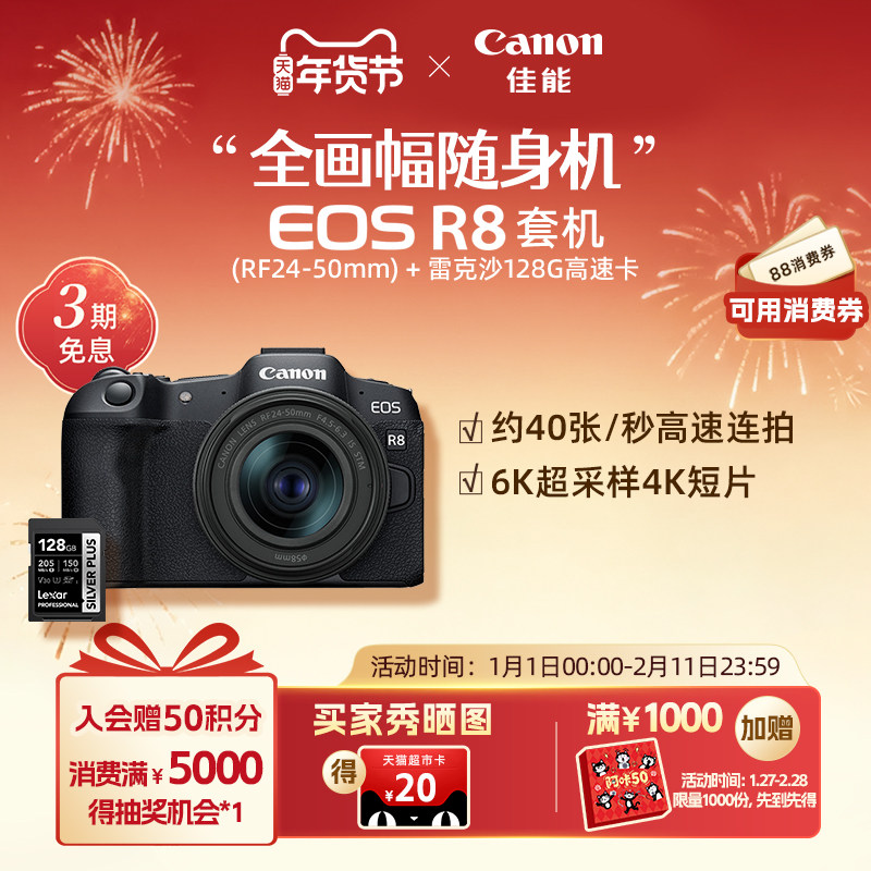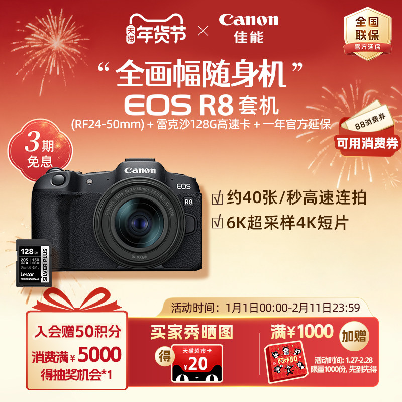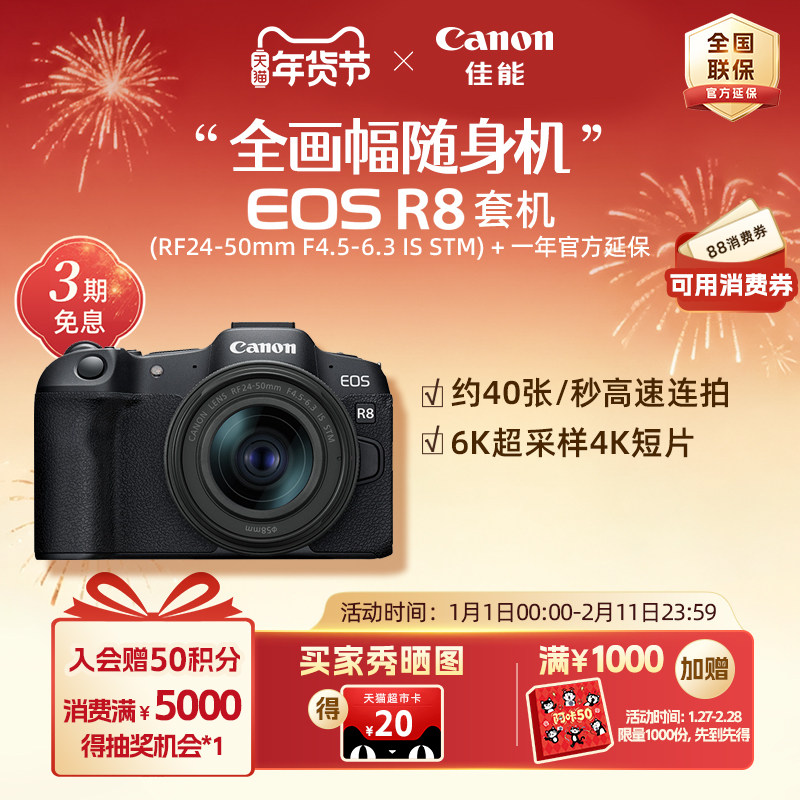 [旗舰店]Canon/佳能EOS R8机身/套机 全画幅专业微单高速连拍相机