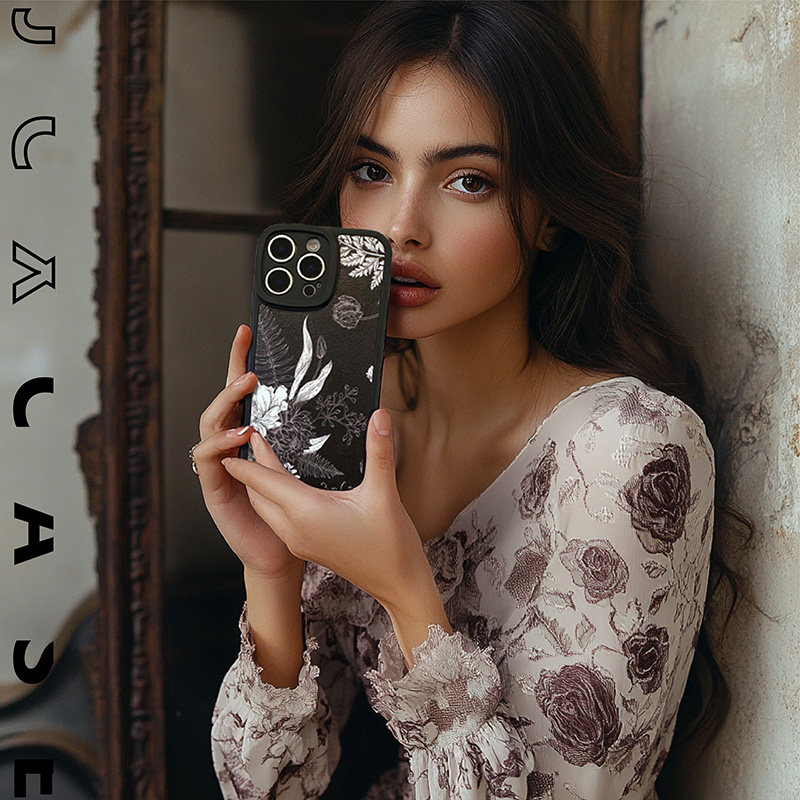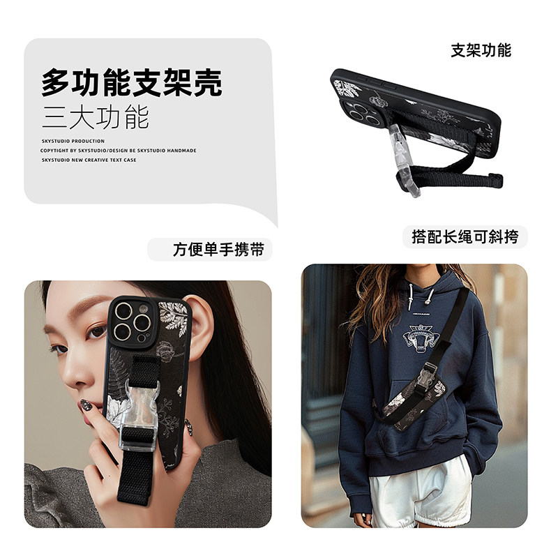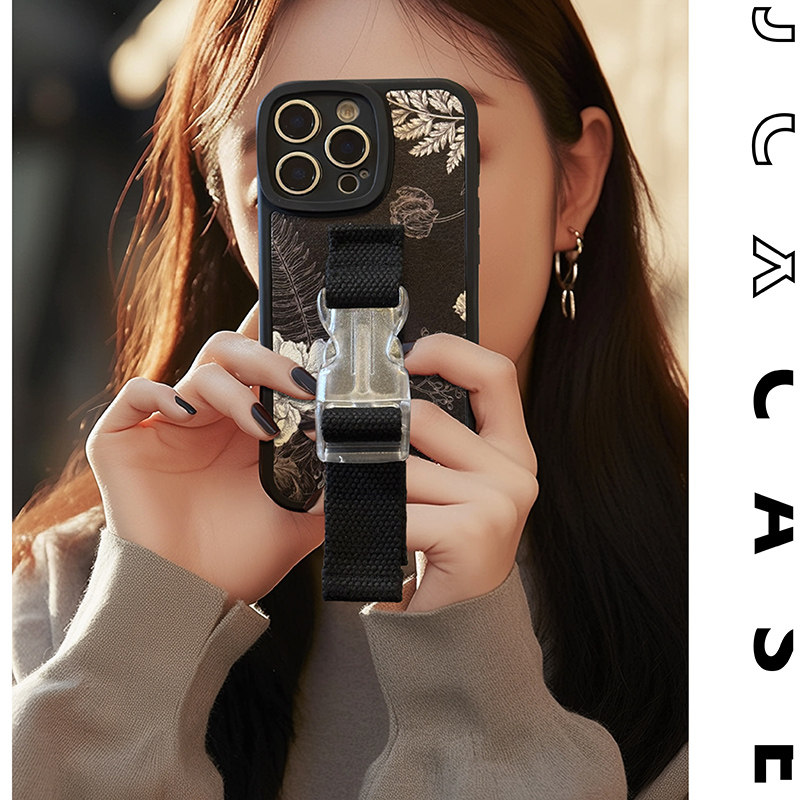 复古花朵苹果17promax手机壳适用iphone15P软套16plus腕带支架17AIR大牌女12斜挎多用11小羊皮Xs全包14硅胶13