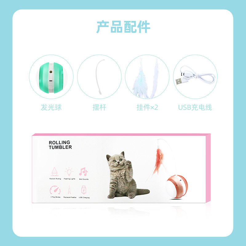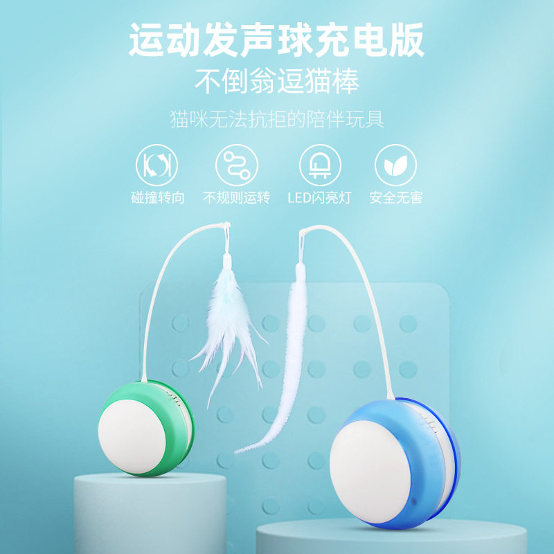 猫咪玩具塑料逗猫球智能自动不倒翁逗猫棒发声猫球羽毛钓竿滚滚球