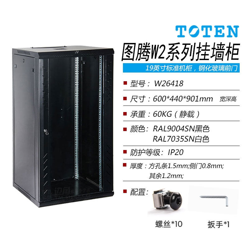 正品TOTEN图腾1米机柜18U挂墙柜W26418弱电网络壁挂式小墙柜19英寸标准原厂机柜加厚600*440*901可办公家用