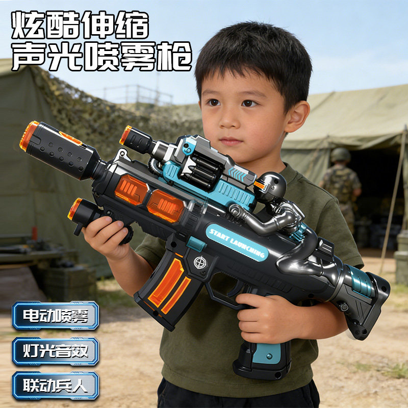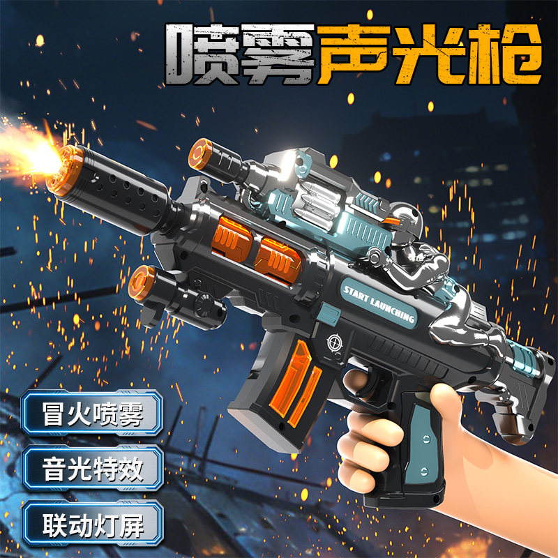 2025新款电动喷雾火焰枪玩具枪儿童玩具男孩冲锋枪宝宝声光3仿真6