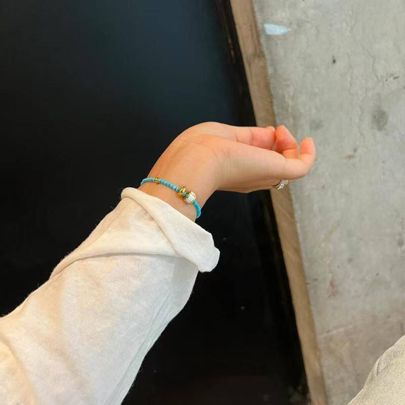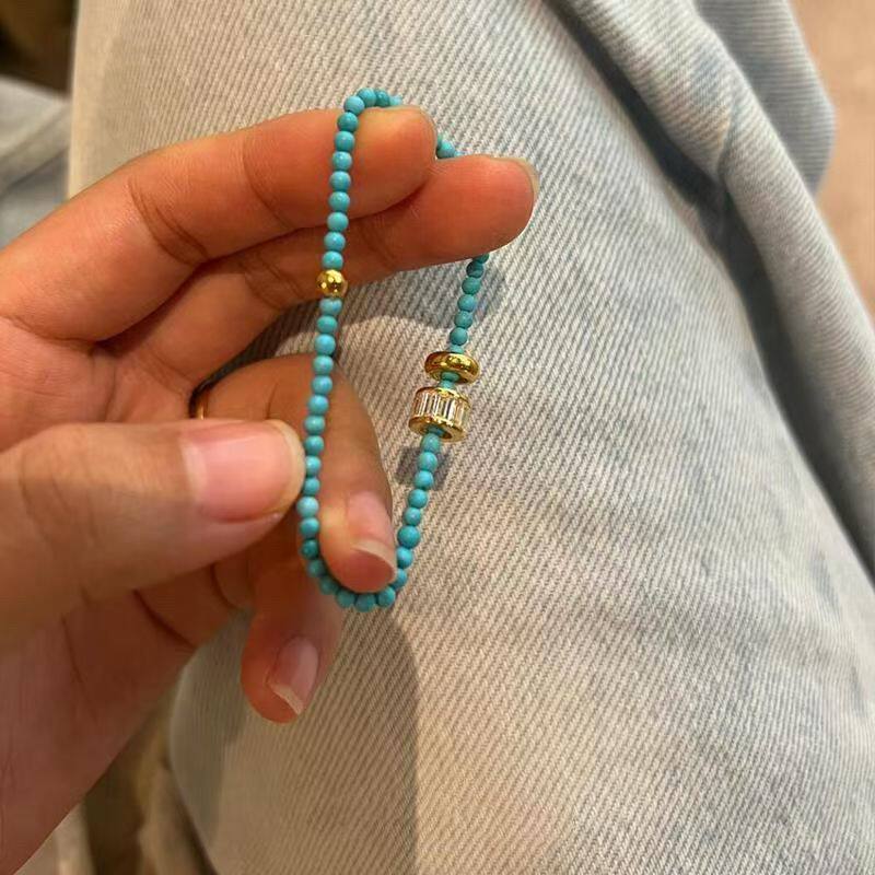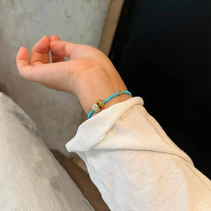 天然绿松石小米珠手串单圈保真极细手链文玩好运招财幸运礼物