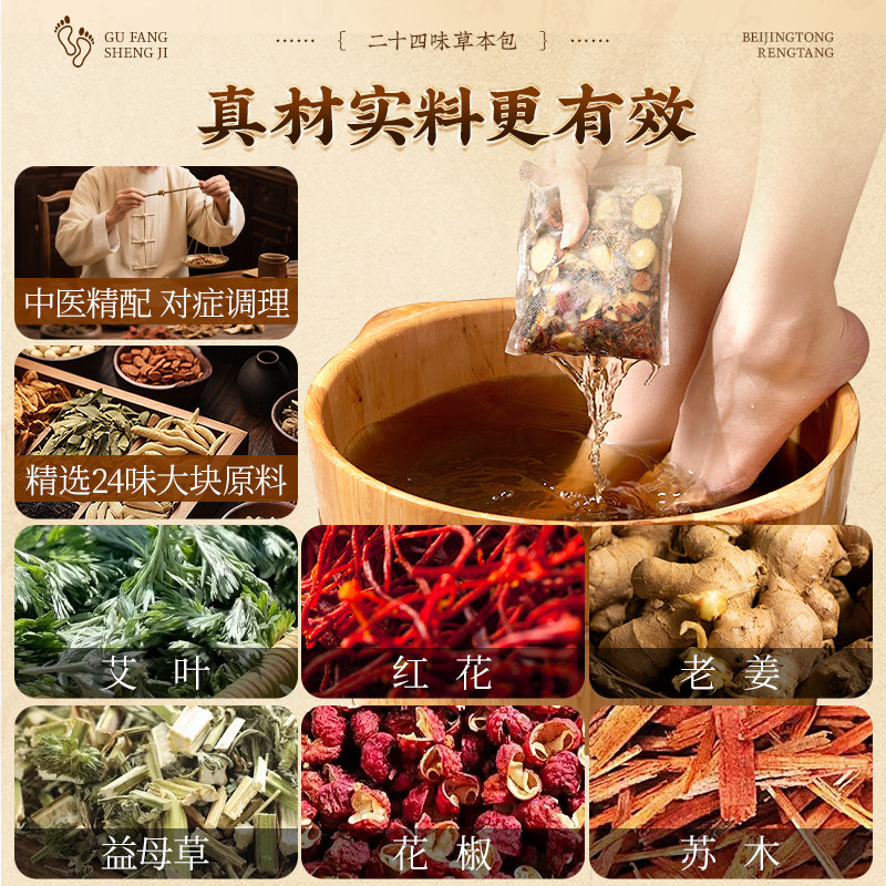 北京同仁堂艾草泡脚的药包去湿气祛排毒驱寒助睡眠足浴生姜花椒叶