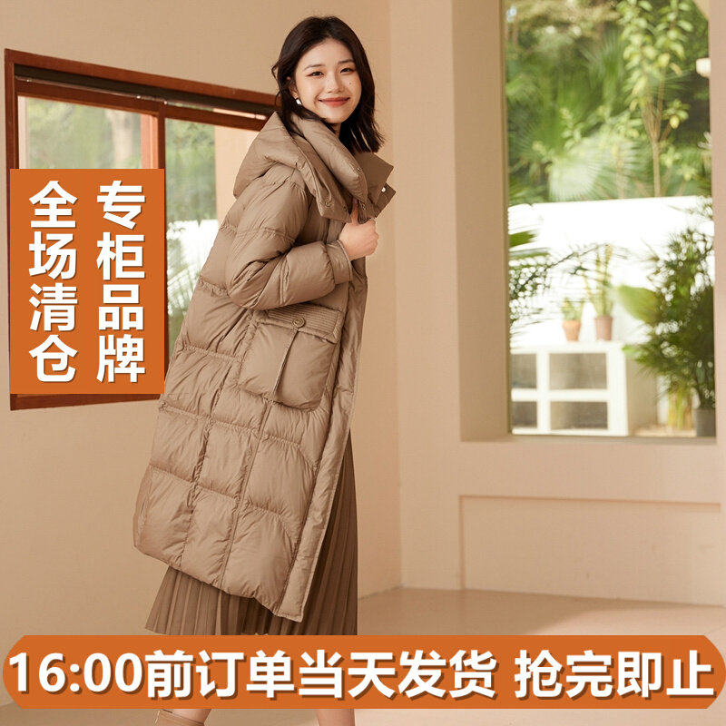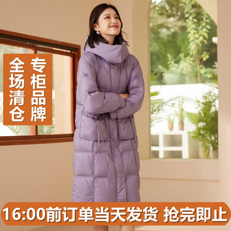 冬连帽加厚轻型蓬松90白鸭绒长款面包羽绒服