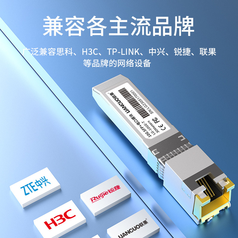 联果 万兆10G电口模块SFP+转RJ45网口光接口扩展万兆10000M速率兼容小米路由器 H3C TP交换机 LG-10GE-T