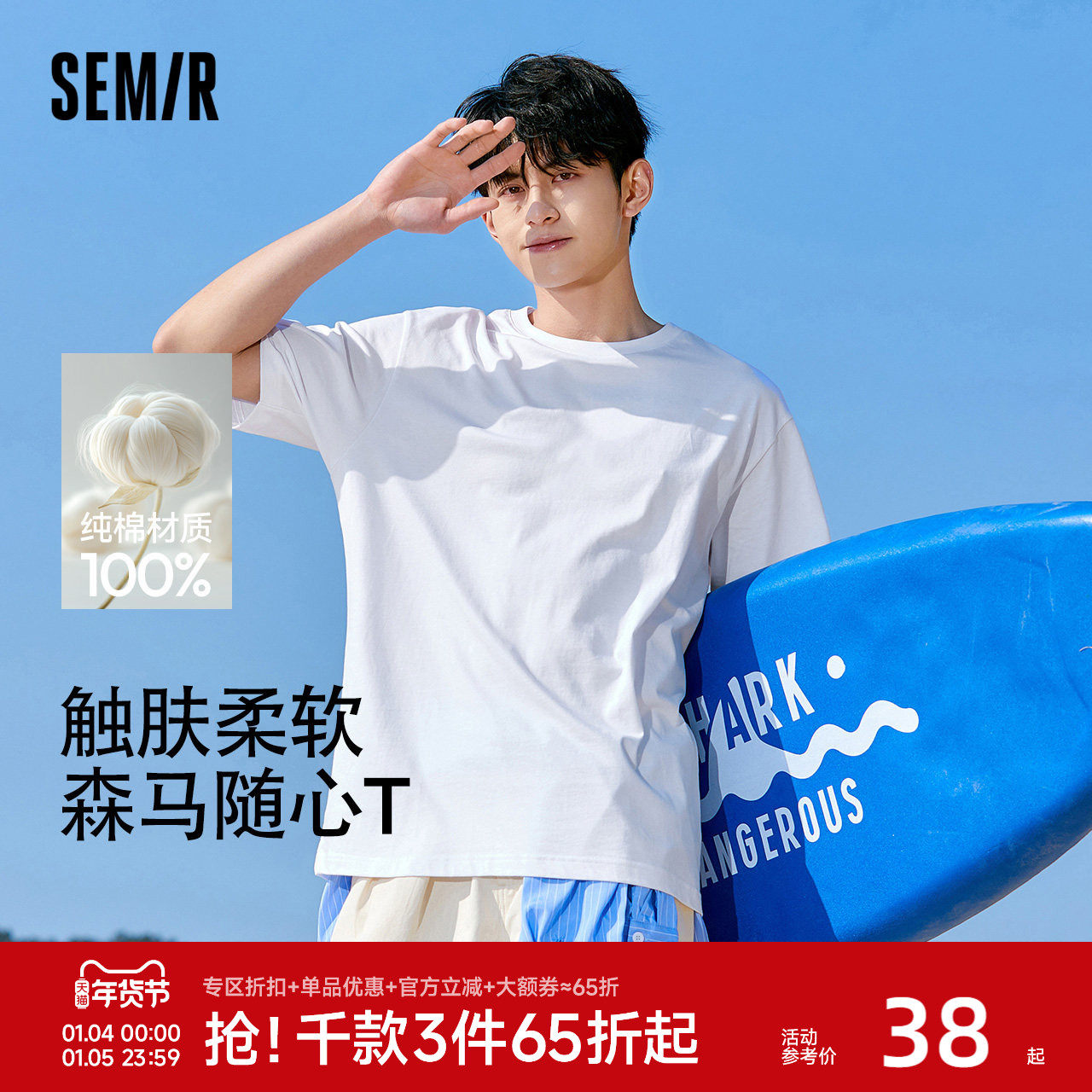 森马短袖T恤男装新款纯棉半袖情侣纯白圆领凉感白t休闲打底衫贴身