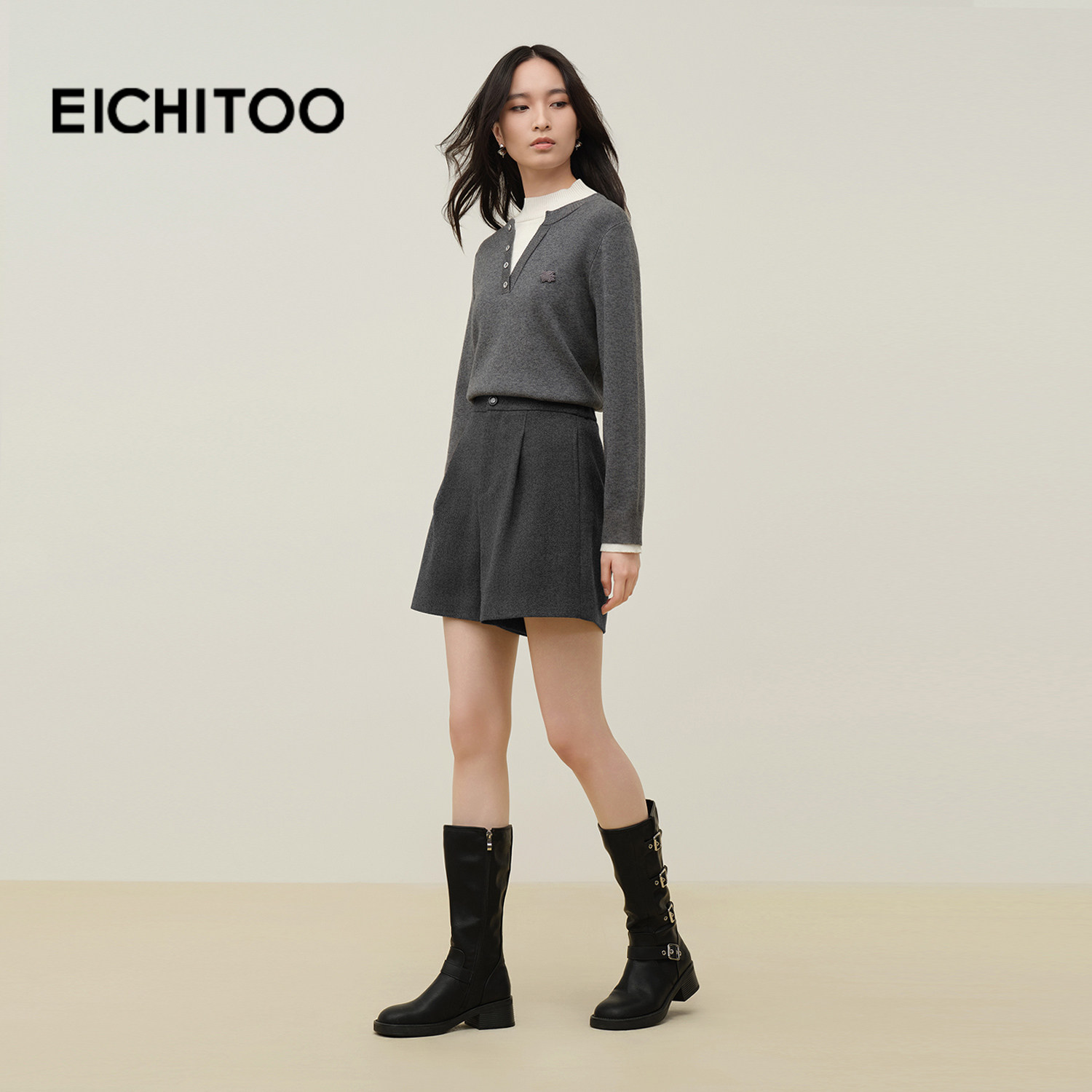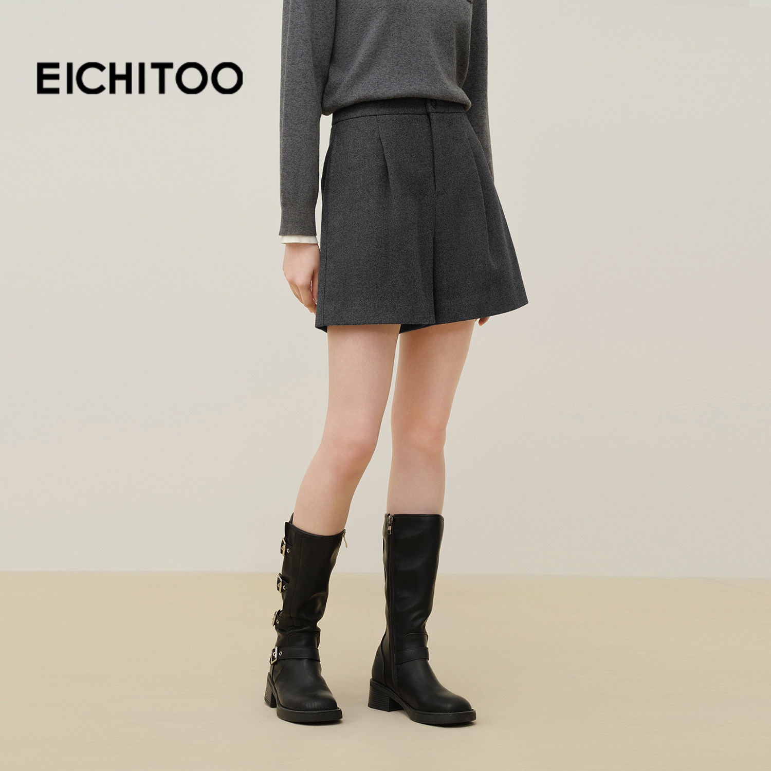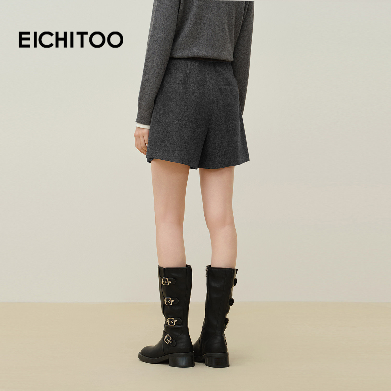 爱居兔高级灰气质休闲短裤女2025年冬季新款立体压褶显瘦A字靴裤