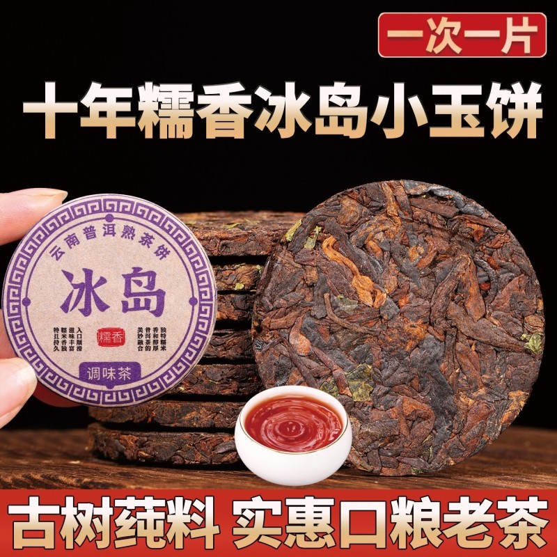 十年陈冰岛糯米香普洱茶熟茶小茶饼茶古树熟普口粮茶叶自己喝糯香