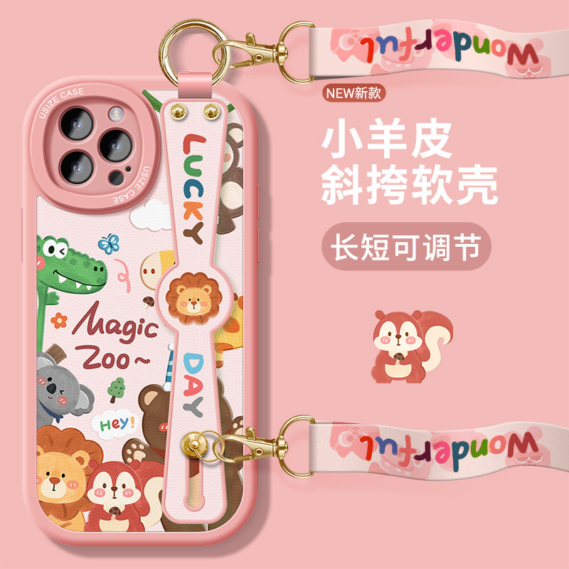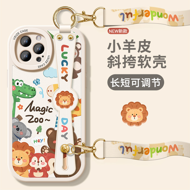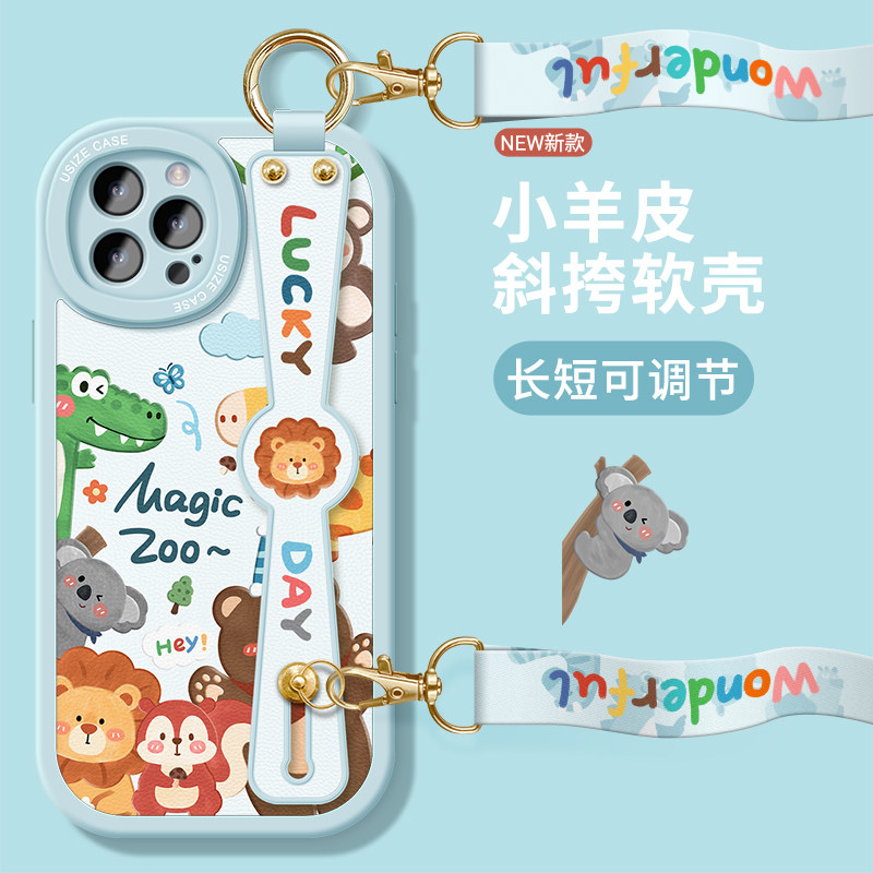 绿色动物适用苹果16手机壳13新款女iPhone14proMAX全包8p防摔12proi腕带xs挂绳7plus斜跨6s斜挎11p挂脖xr背带